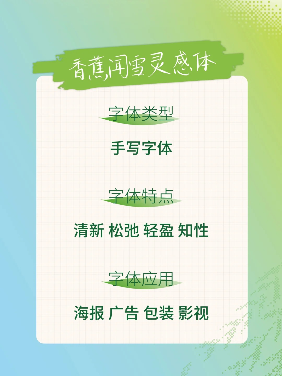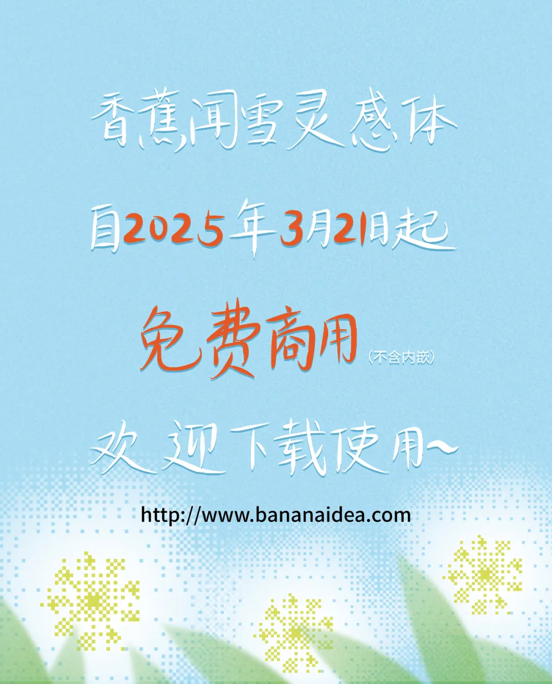 安装后在PS、AI、word等软件中若找不到该字体,可搜索名字「香蕉闻雪灵感体」,字体安装方法与常见问题:点击查看