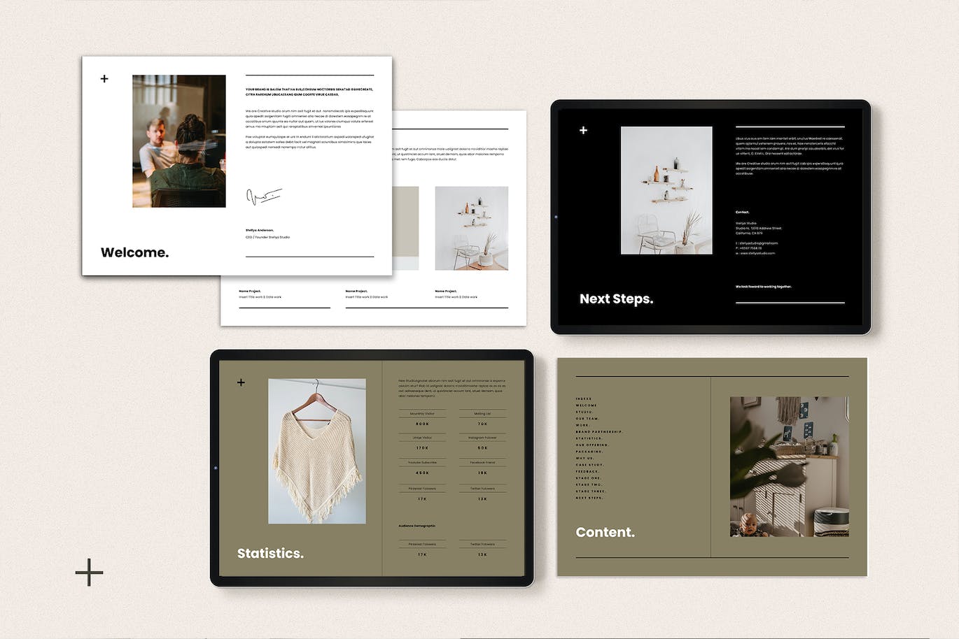 这次老不湿分享的是,时尚高端专业的高品质媒体新闻资料画册宣传册杂志楼书设计模板,具有 18 张幻灯片和 2 种纸张尺寸,包括 US Letter 和 International A4。您看到的所有内容都可以在 Indesign、Photoshop 中进行编辑。所有颜色都可以轻松更改。所有文本均采用免费字体,并提供下载链接。