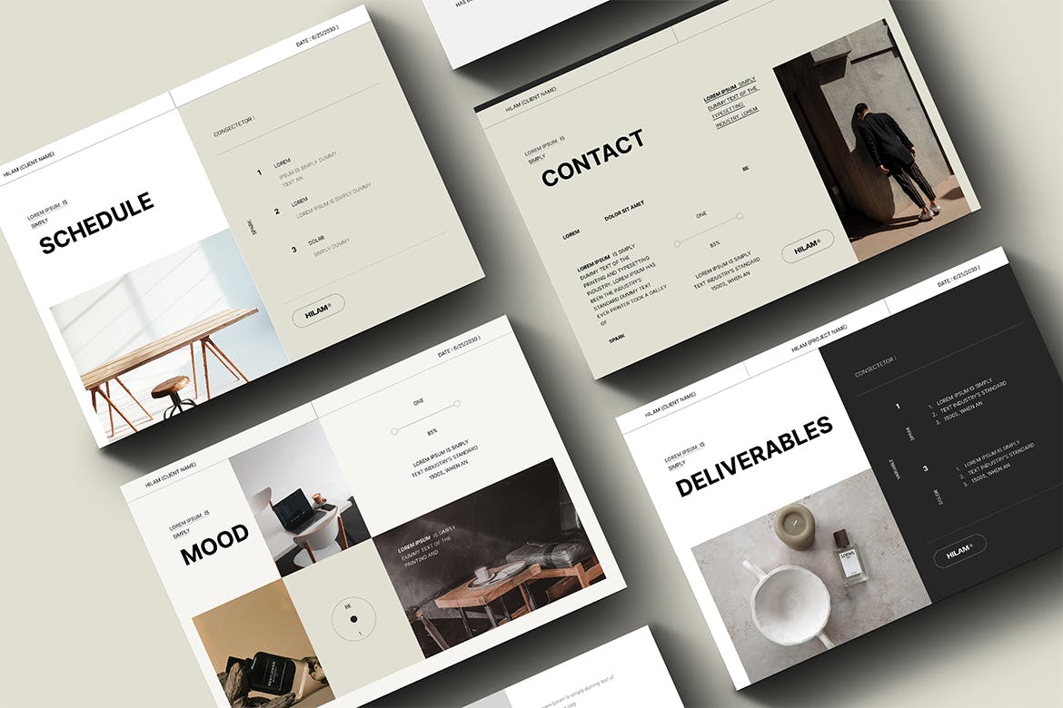品牌提案模板是经典的永恒简洁设计,灵感来自我最喜欢的品牌之一:Aesop。