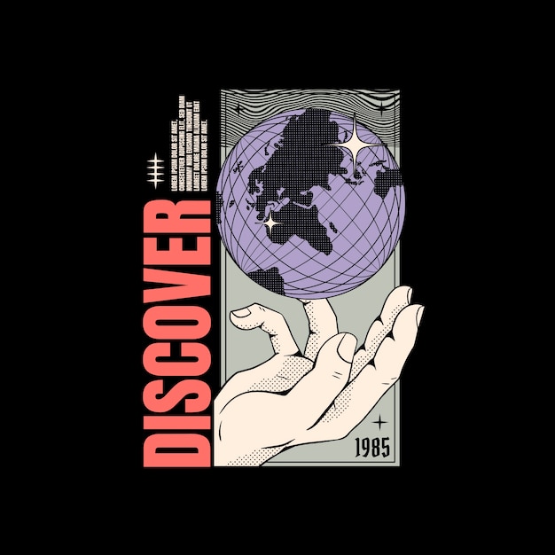 手捧地球街头服饰插画手绘设计,矢量格式文件,易于修改和更改颜色。这个插画适合您的各种服装设计类型业务。