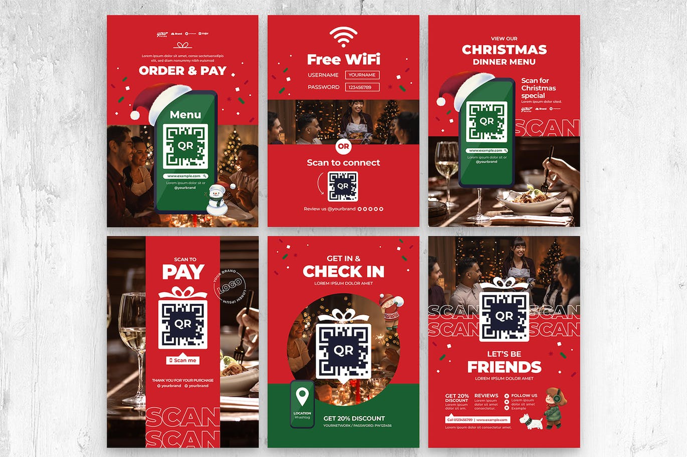 这些 QR 码模板具有节日主题,非常适合在整个假期期间用于酒店和零售 POS。