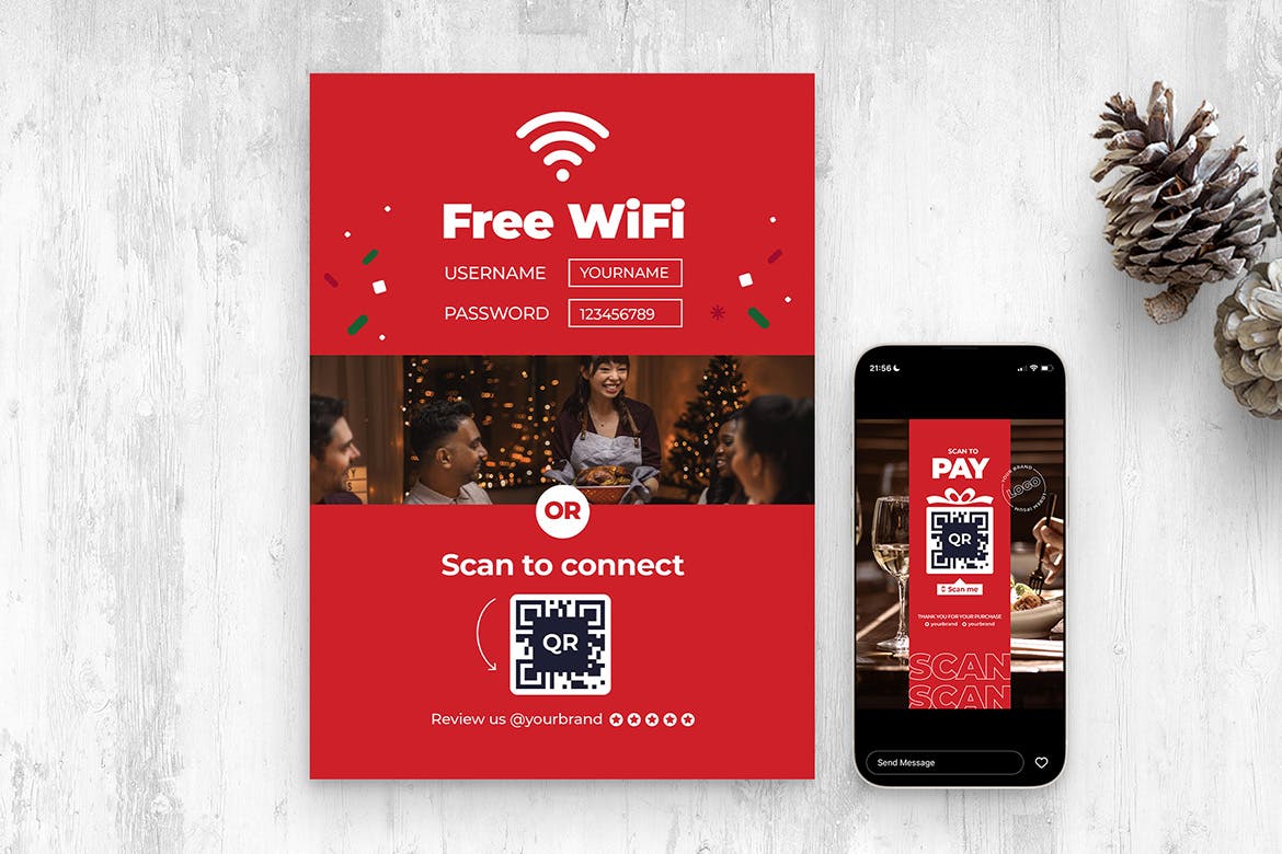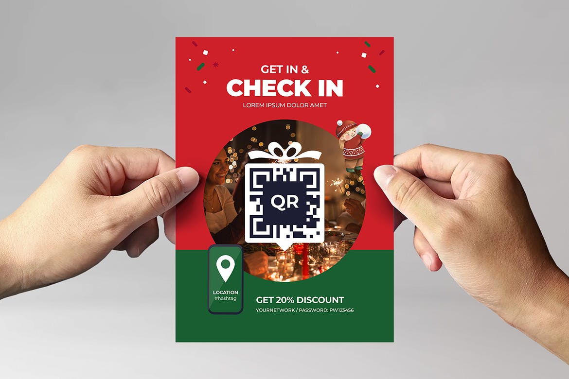 这次老不湿分享的是,时尚高端多用途的新年圣诞节宣传单朋友圈海报设计模板-AI, EPS, PSD,二维码模板近来变得越来越流行,人们可以通过扫描二维码进行登记、付款、查看菜单等操作。