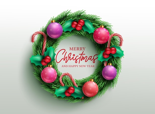 圣诞快乐问候语圣诞花环矢量概念设计,适用于圣诞贺卡、圣诞活动、海报、贴纸、节日传单、网站Banner、网页设计等。
