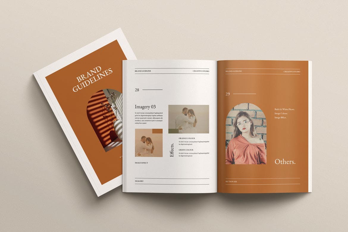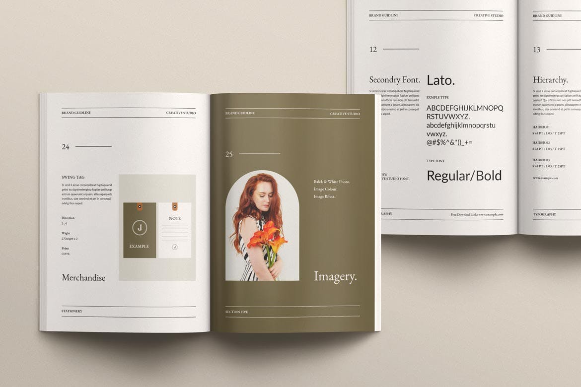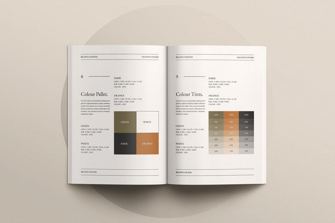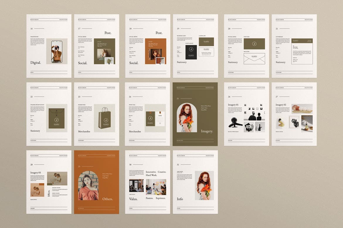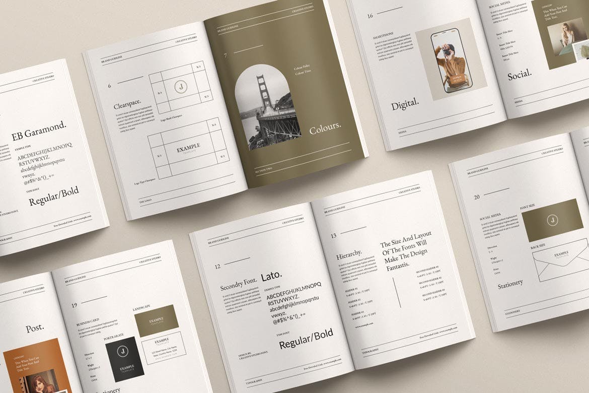 这次老不湿分享的是,时尚高端优雅的专业品牌指南宣传册画册品牌战略手册设计模板,本品牌指南是一个灵活且易于使用的 品牌指南模板。它与简洁整洁的布局相得益彰,为您的下一次品牌标识移交奠定了良好的基础。模板包含完整身份交付所需的所有相关部分 – 从品牌概览、徽标、调色板、排版套件、图像和原位品牌示例以及资产概览,可在整个最终交付过程中轻松导航您的客户文件。