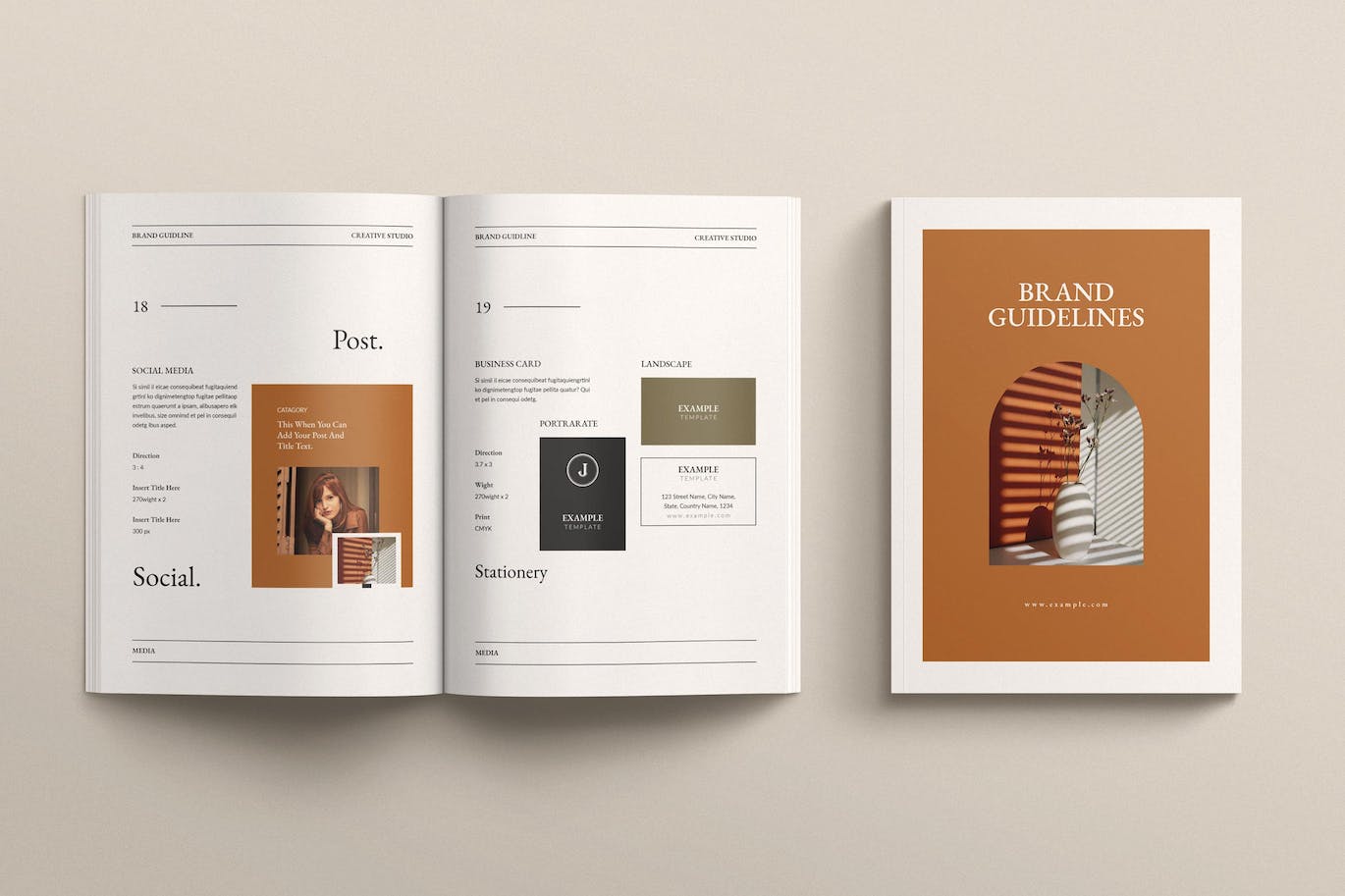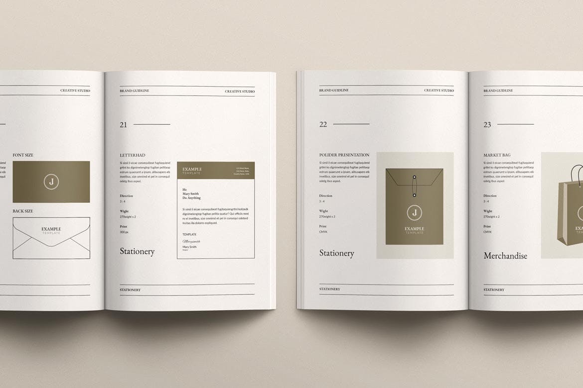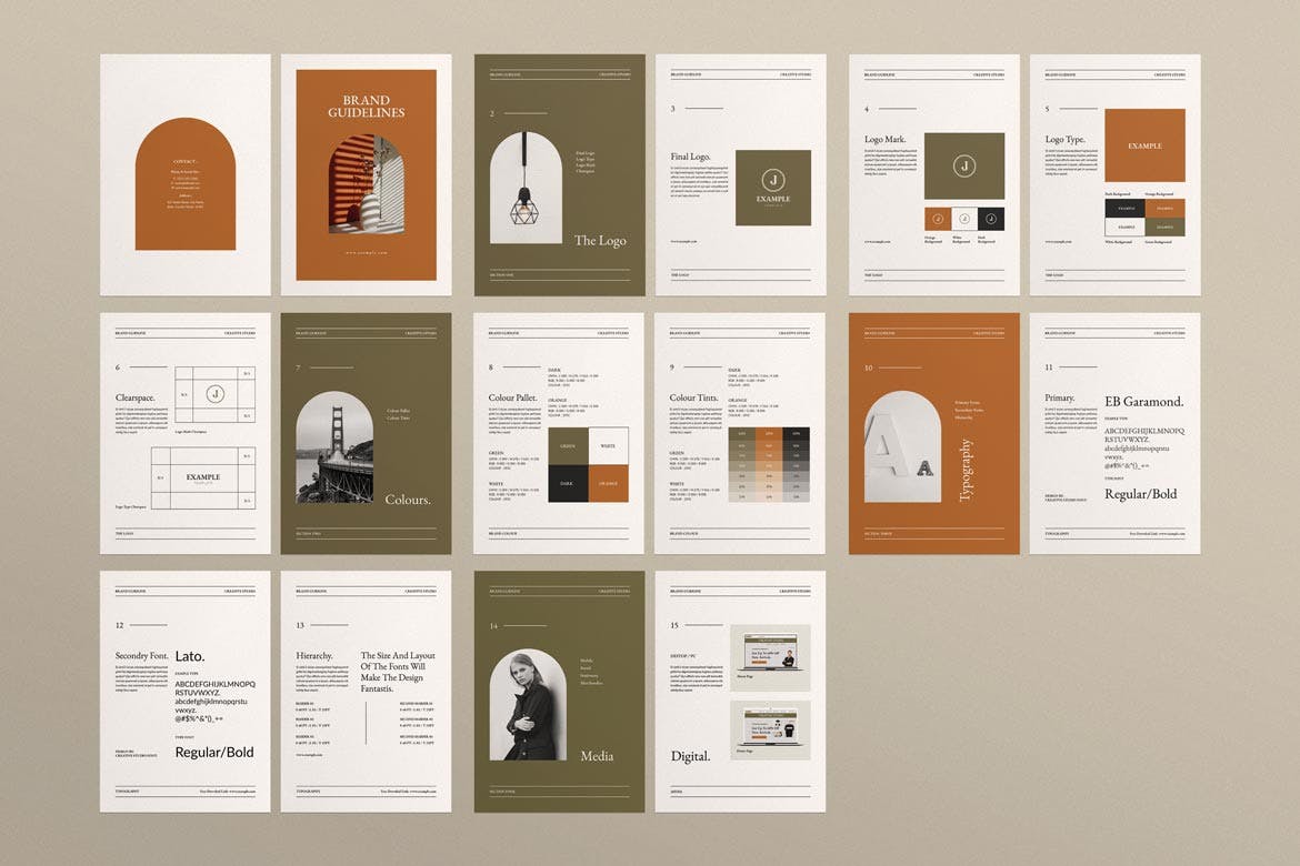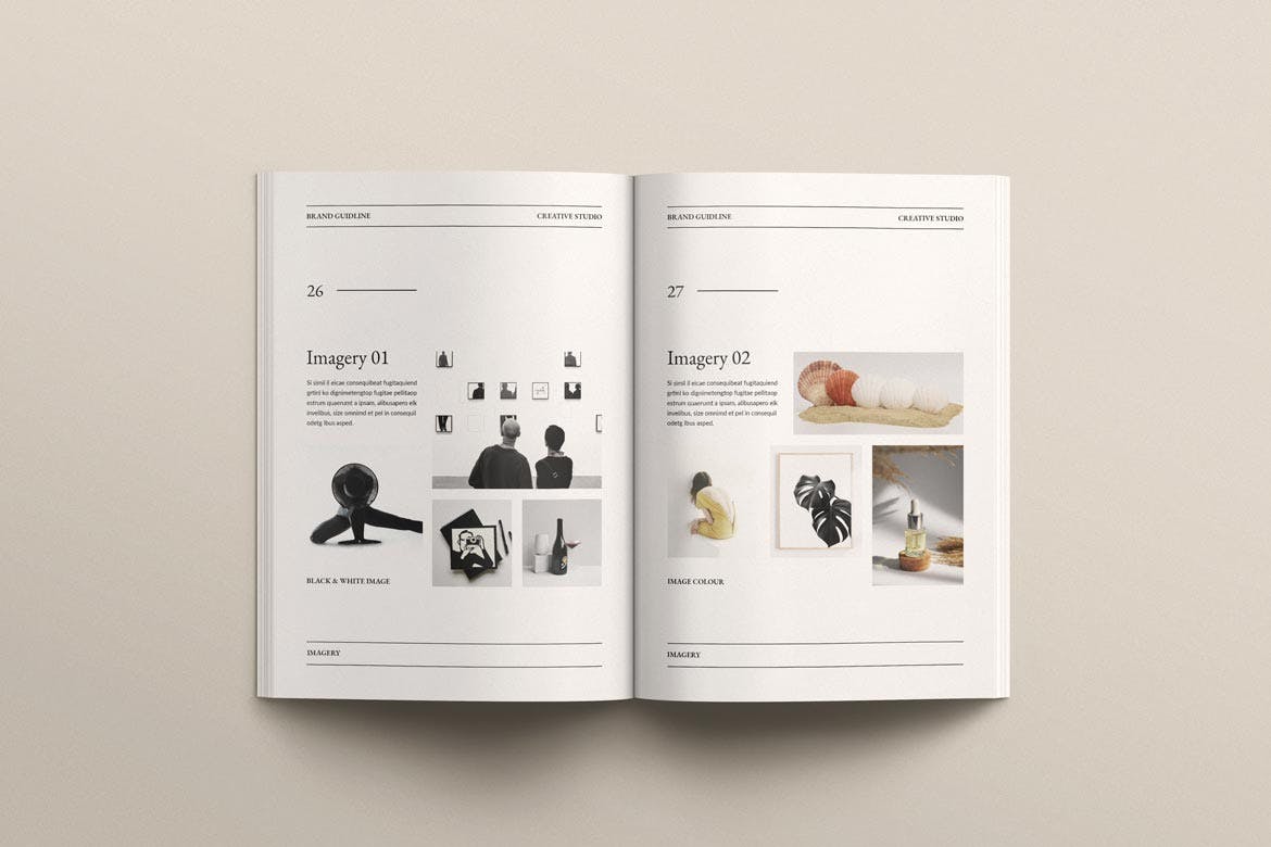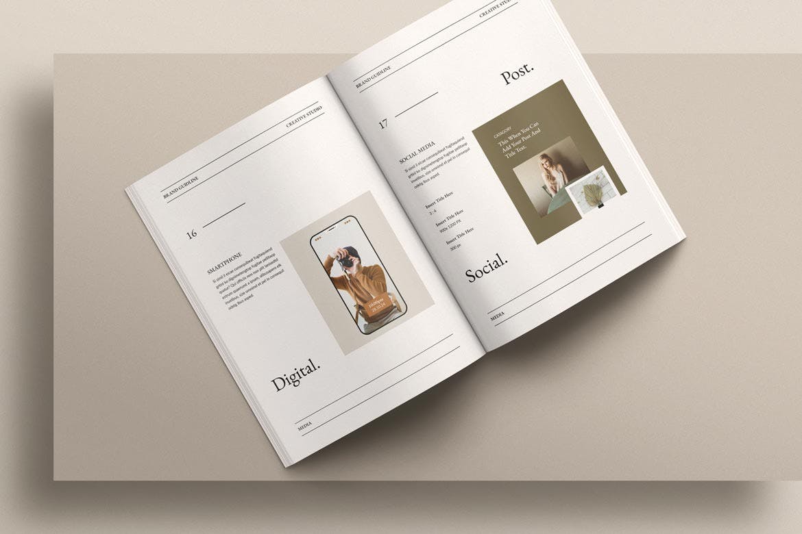 这次老不湿分享的是,时尚高端优雅的专业品牌指南宣传册画册品牌战略手册设计模板,本品牌指南是一个灵活且易于使用的 品牌指南模板。它与简洁整洁的布局相得益彰,为您的下一次品牌标识移交奠定了良好的基础。模板包含完整身份交付所需的所有相关部分 – 从品牌概览、徽标、调色板、排版套件、图像和原位品牌示例以及资产概览,可在整个最终交付过程中轻松导航您的客户文件。