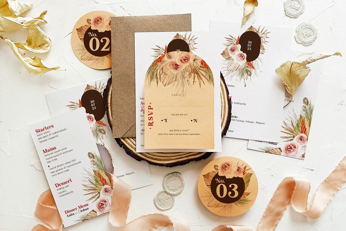 波西米亚风格婚礼请柬设计套装 (psd) 平面图形 25年6月7日 编辑 前往下载 语梦金牌服务官 取消关注 关注 私信 浪漫的波西米亚风婚礼请柬设计,混合了干棕榈叶和沙漠色调的玫瑰水彩插图,适合婚礼项目!对于 PSD 文件,图层排列良好且颜色突出显示,因此您可以轻松自定义它。 下载权限查看 ¥ 免费下载 评论并刷新后下载 登录后下载 查看演示 {{attr.name}}: 您当前的等级为 登录后免费下载登录 小黑屋反思中,不准下载! 评论后刷新页面下载评论 支付¥以后下载 请先登录 您今天的下载次数(次)用完了,请明天再来 支付积分以后下载立即支付 支付以后下载立即支付 您当前的用户组不允许下载升级会员 您已获得下载权限 您可以每天下载资源次,今日剩余次 婚礼请柬波西米亚风请柬设计