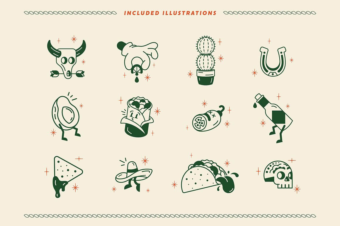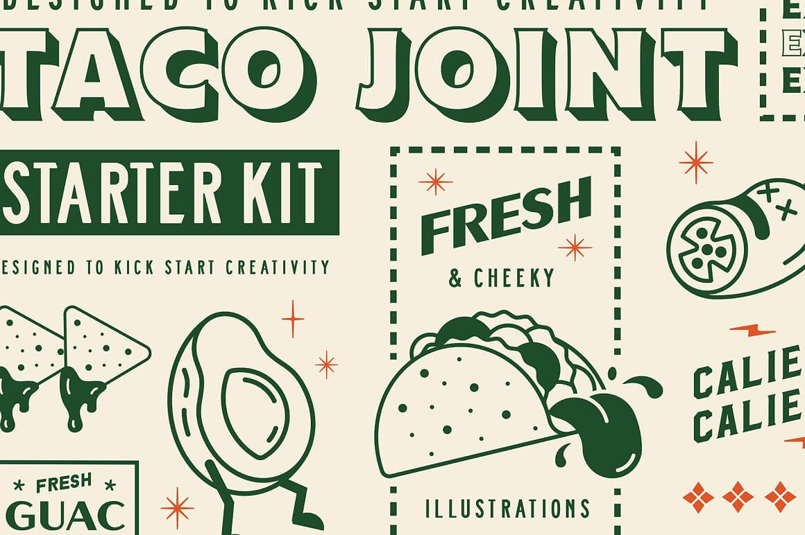 这款入门套件旨在激发创造力,为您提供独特的墨西哥主题插画和字体处理集合,作为您与炸玉米饼相关的创意工作的起点。非常适合为包装、菜单设计、环境图形、印刷材料创建独特的品牌表达。以及更多!这些插画也是很棒的宣传材料!像贴纸、定制服装、社交媒体帖子……你能想到的!