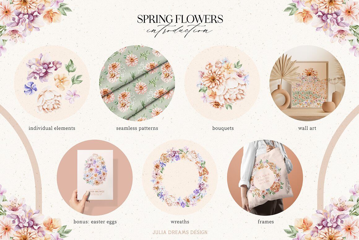 该系列经过精心制作,并非常注重细节。它由不同的预制元素和无缝图案组成,可以单独使用或与其他元素组合使用。使用现成的元素和图案,或使用所有这些元素创建您自己的个人产品。