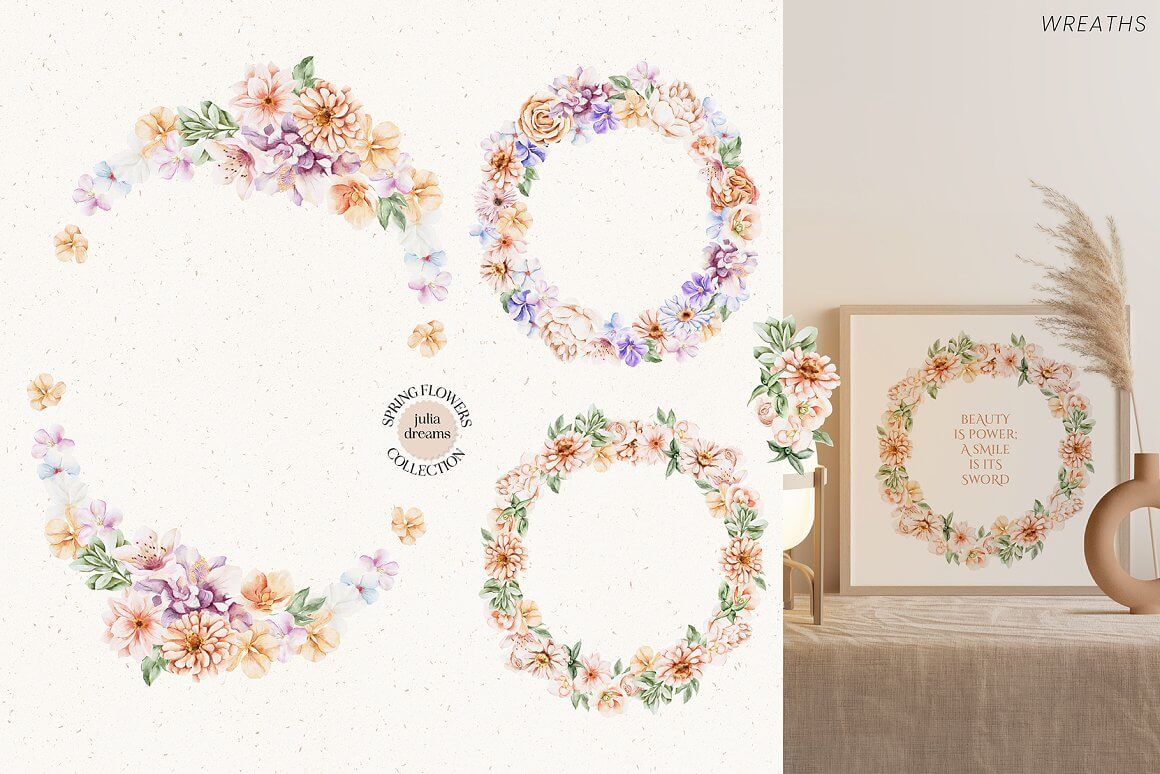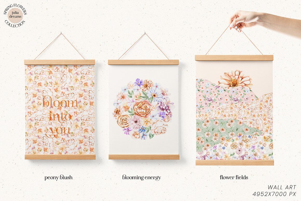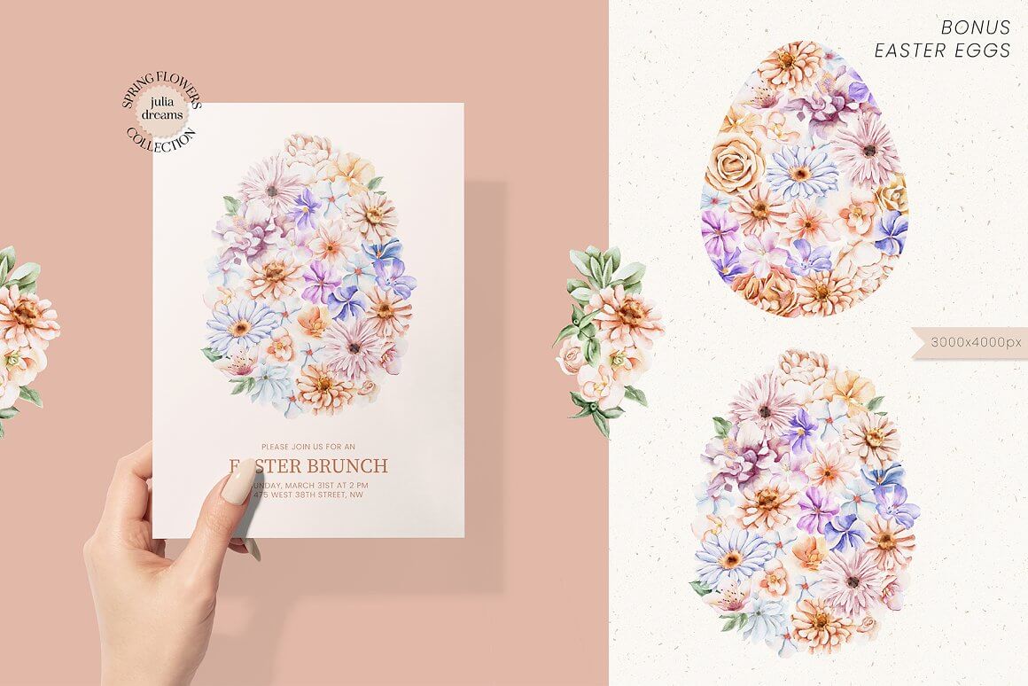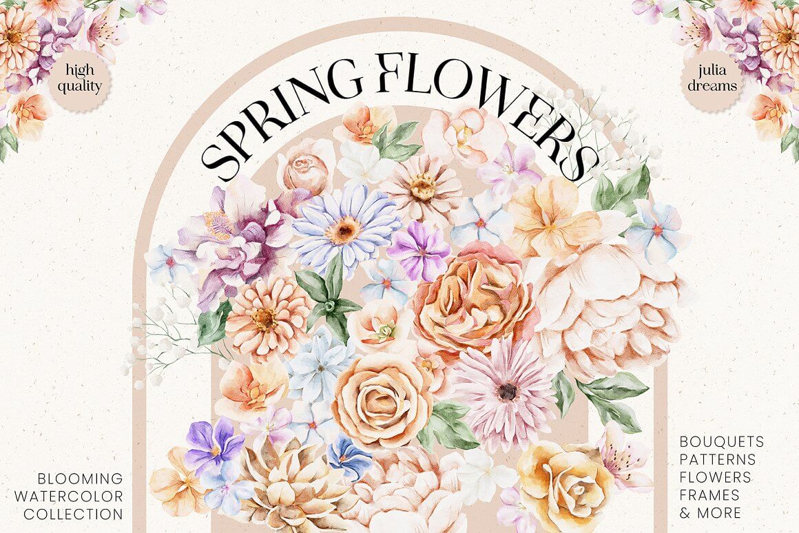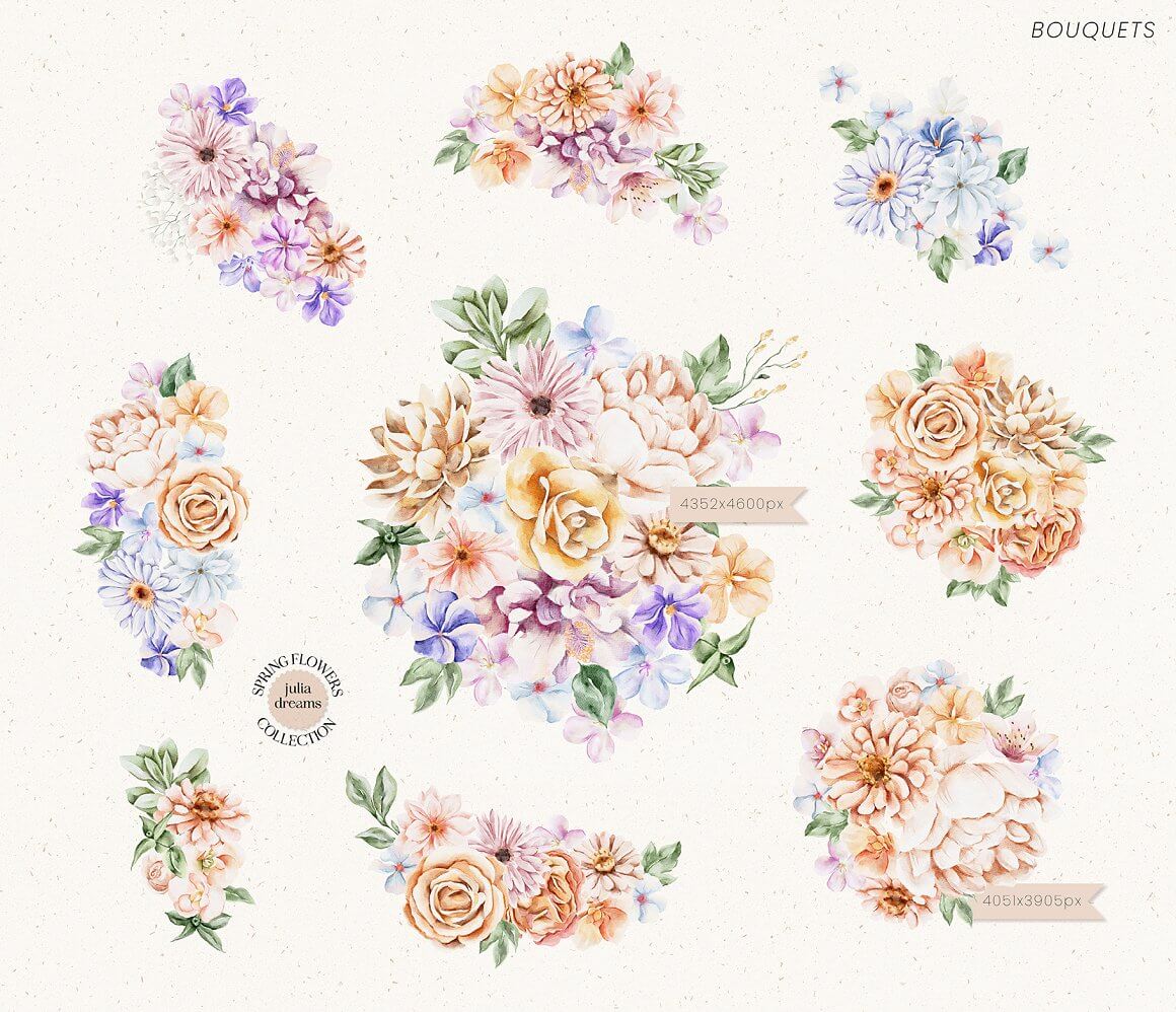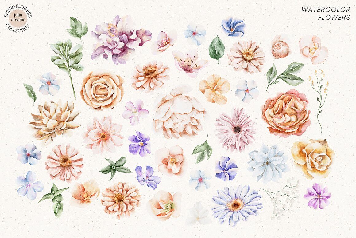柔和的春天花朵和精致的小叶子为该系列营造出绝对的情感氛围。手绘爱心水彩植物元素,可以完美搭配您的项目,帮助打造精致、内敛、时尚的风格。