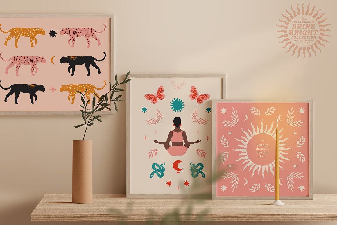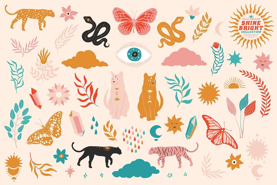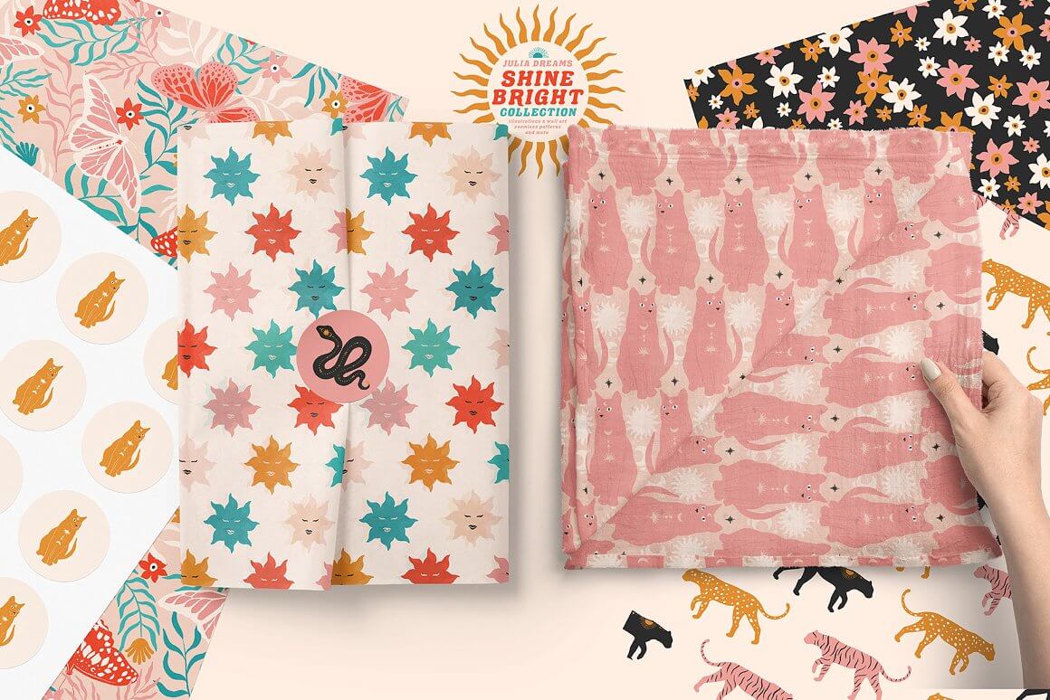 只需添加现成的图形:图案和印花。但也有各种各样的个人元素:插图、动物和花卉元素。