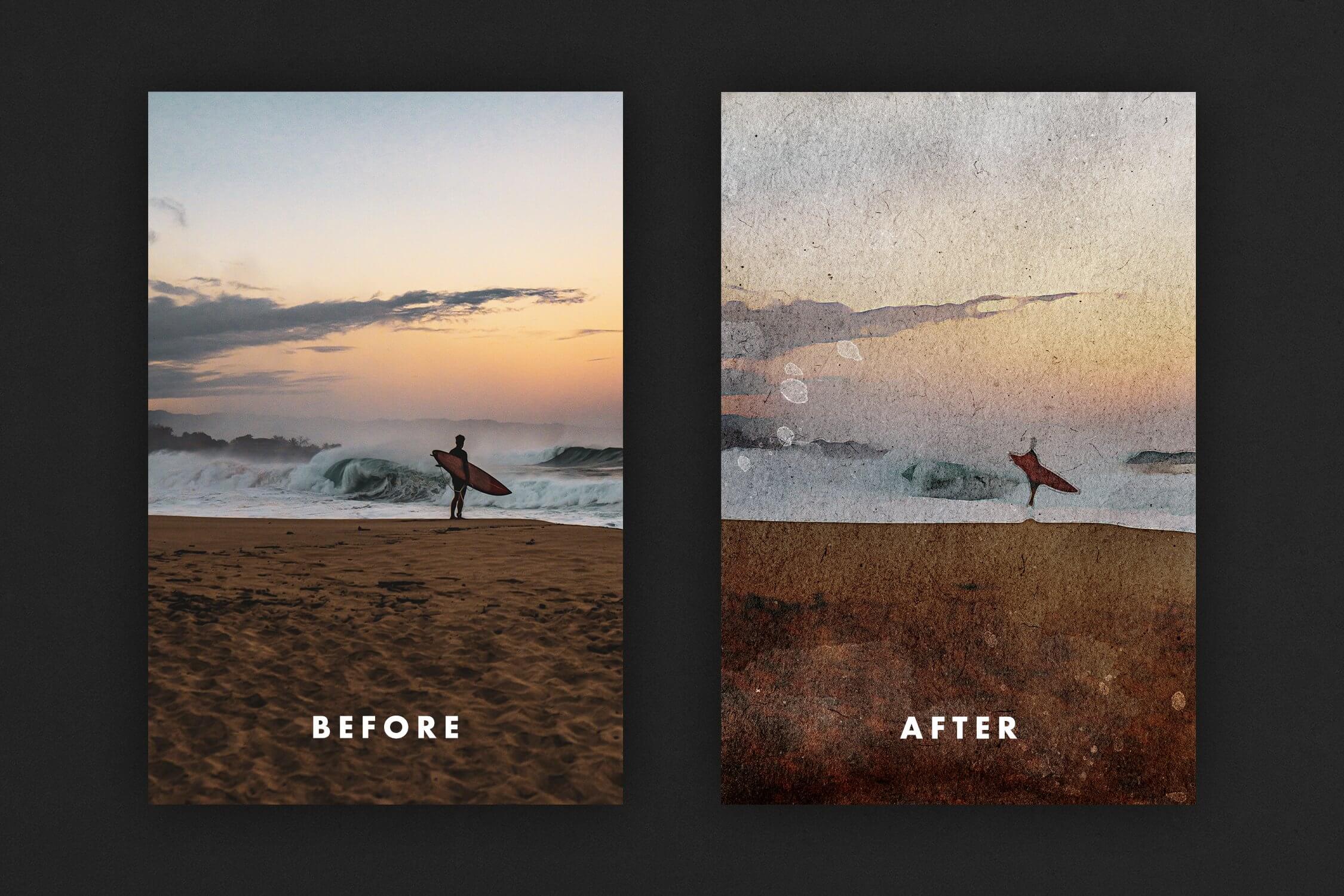 我们会直截了当地说:我们选择了经典水彩作为黄金标准,并用从事这项技术的主要艺术家的美学对其进行了打磨。在这里,我们获得了这种完美无瑕且极其迷人的水彩 Photoshop 效果,能够将任何艺术品变成一件值得金框和展览展示的作品。但是,获得这样的图像比一笔一笔地绘制要容易得多。