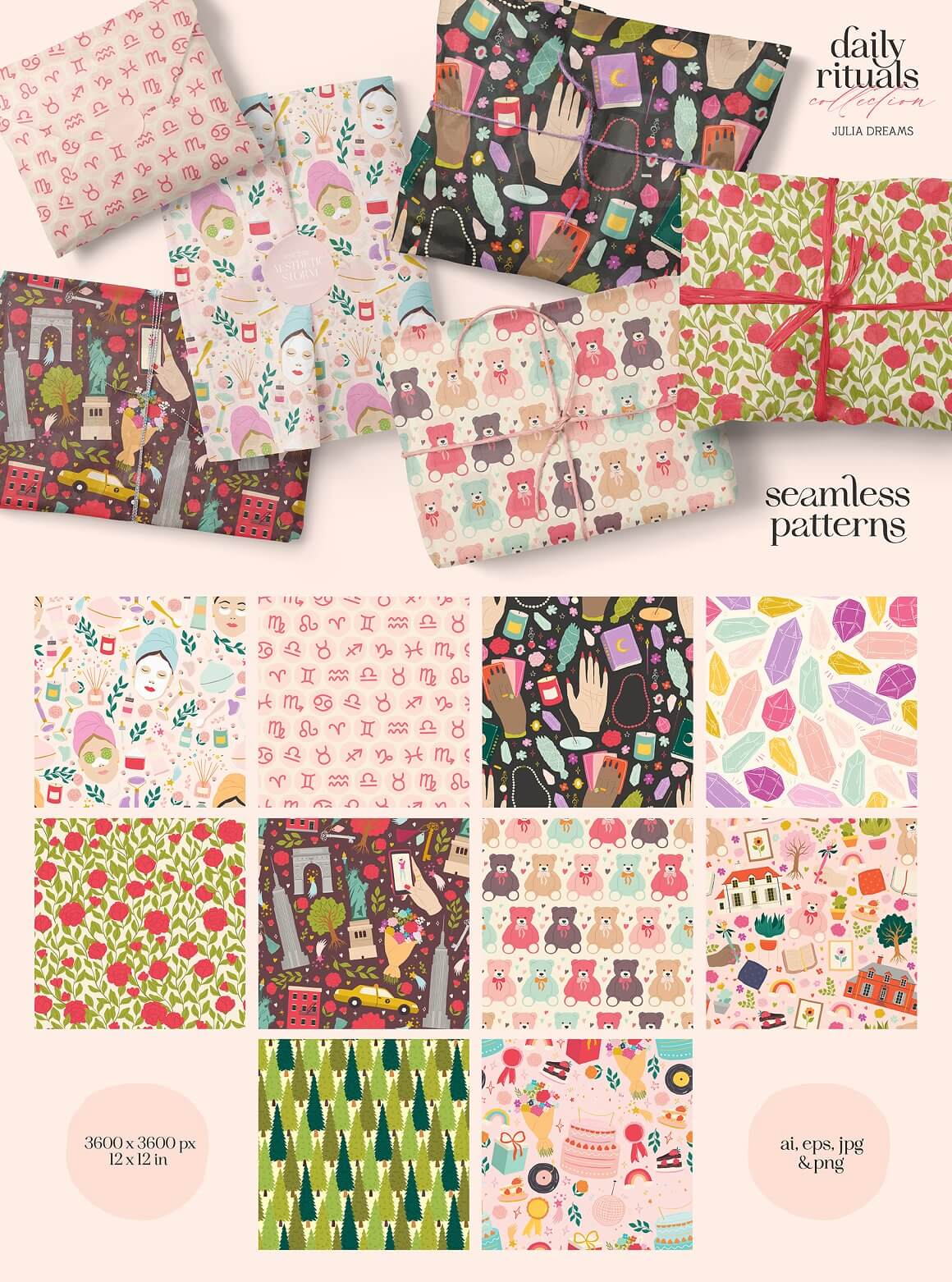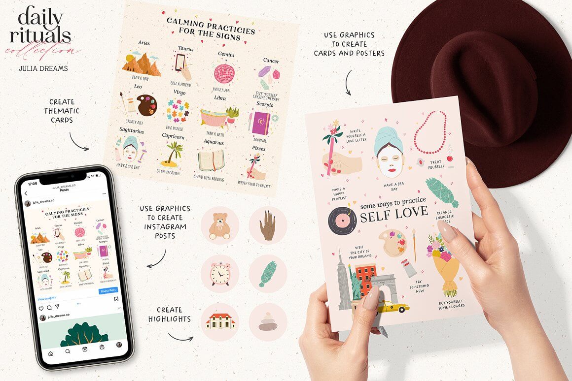日常生活元素插画/图案收藏集 (ai,eps) 平面图形 25年6月7日 编辑 前往下载 语梦金牌服务官 取消关注 关注 私信 这个系列是关于自我保健、占星术和日常仪式的。精心打造,注重细节。它由不同的预制元素和无缝图案组成,可以单独使用或与其他元素组合使用。使用即用型印花和图案,或使用所有这些元素创建您自己的个性化产品。 下载权限查看 ¥ 免费下载 评论并刷新后下载 登录后下载 查看演示 {{attr.name}}: 您当前的等级为 登录后免费下载登录 小黑屋反思中,不准下载! 评论后刷新页面下载评论 支付¥以后下载 请先登录 您今天的下载次数(次)用完了,请明天再来 支付积分以后下载立即支付 支付以后下载立即支付 您当前的用户组不允许下载升级会员 您已获得下载权限 您可以每天下载资源次,今日剩余次 无缝图案生活元素生活插画