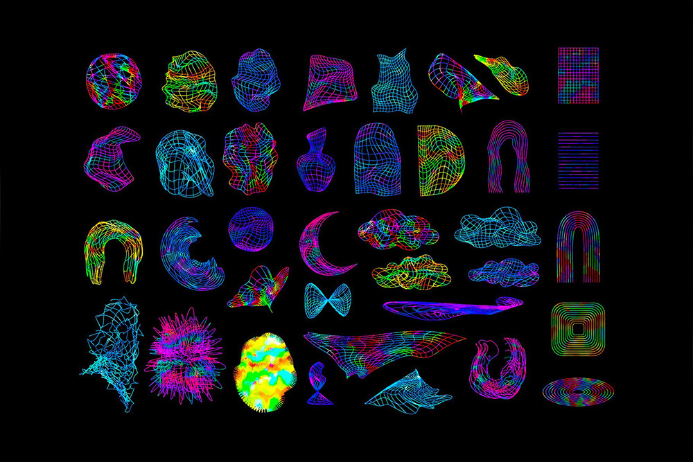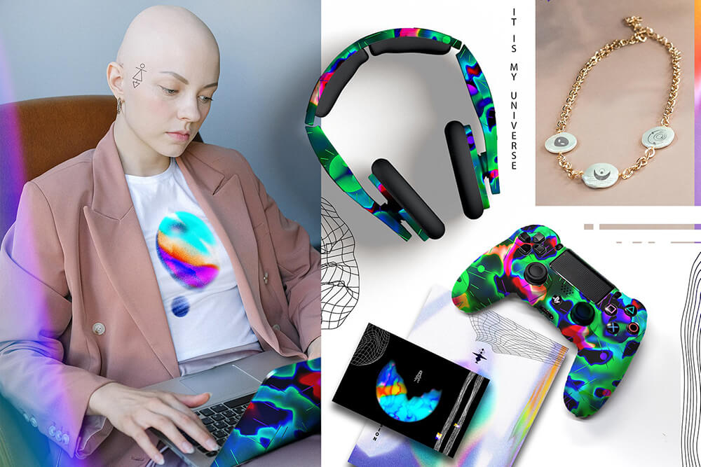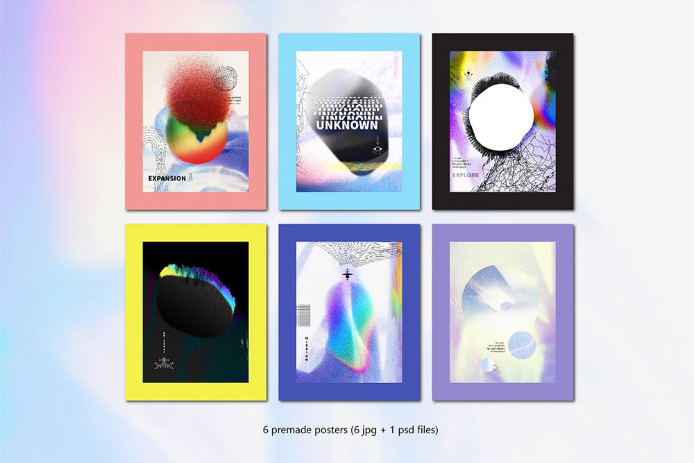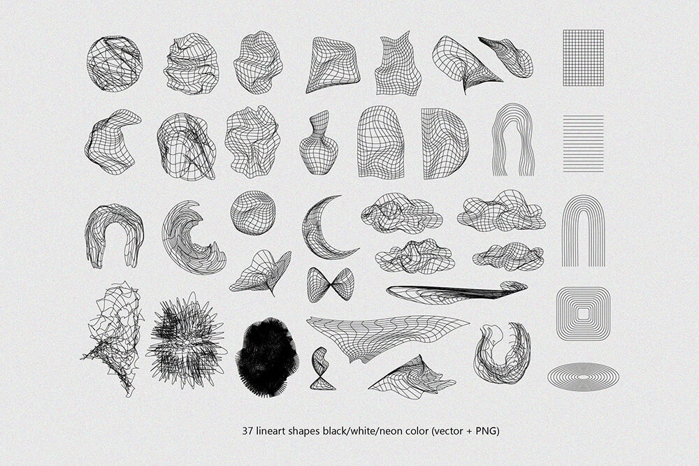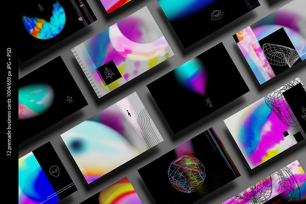 抽象星系图形元素集合包括线条艺术宇宙符号(行星、太空船、外星人、太阳、月亮……)、充满活力的流体纹理渐变、颗粒状和光滑的形状、图案、逃避现实的设计海报、名片。对于您的项目、图标、标志、纹身、网站、小册子、海报、社交媒体、品牌和包装的现代未来主义设计。
