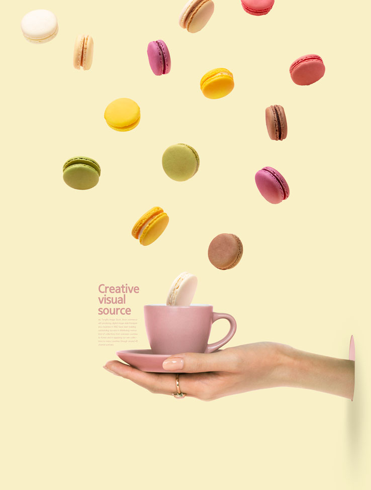 这次要分享的是飘散的马卡龙饼干创意视觉海报设计模板,psd源文件,组织良好的图层,可用于美食甜品的广告宣传。