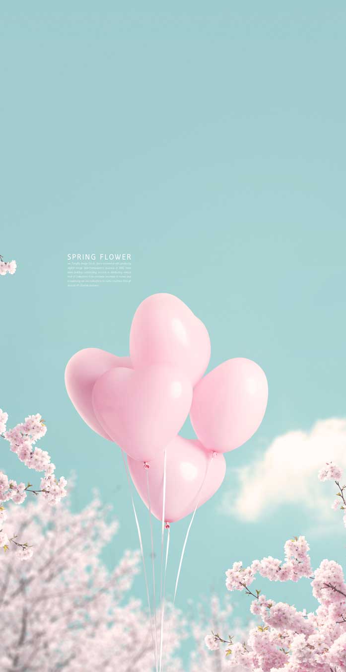 爱心气球樱花蓝天手机壁纸背景素材 (psd)