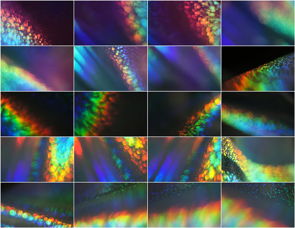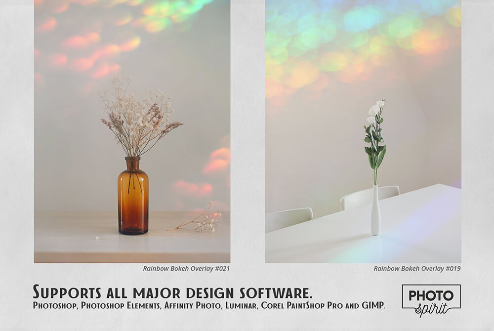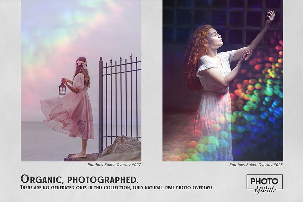 彩虹散景效果叠层的宏伟集合,确保您的照片获得新的魅力、艺术性和情感。适合业余爱好者和专业人士。在彩色和黑白照片上表现出色。为了您的方便,在屏幕模式中添加了用于选择和覆盖叠加层的操作。这适用于 Photoshop 和 Photoshop Elements。可以在任何图形编辑器中使用,它支持屏幕模式下的图层叠加。