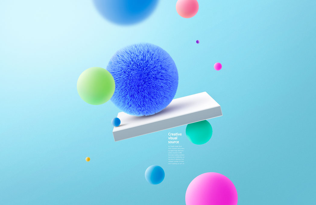 这次要分享的是毛绒绒圆球创意视觉海报设计模板,psd源文件,分层设计,适合各种抽象创意项目使用。