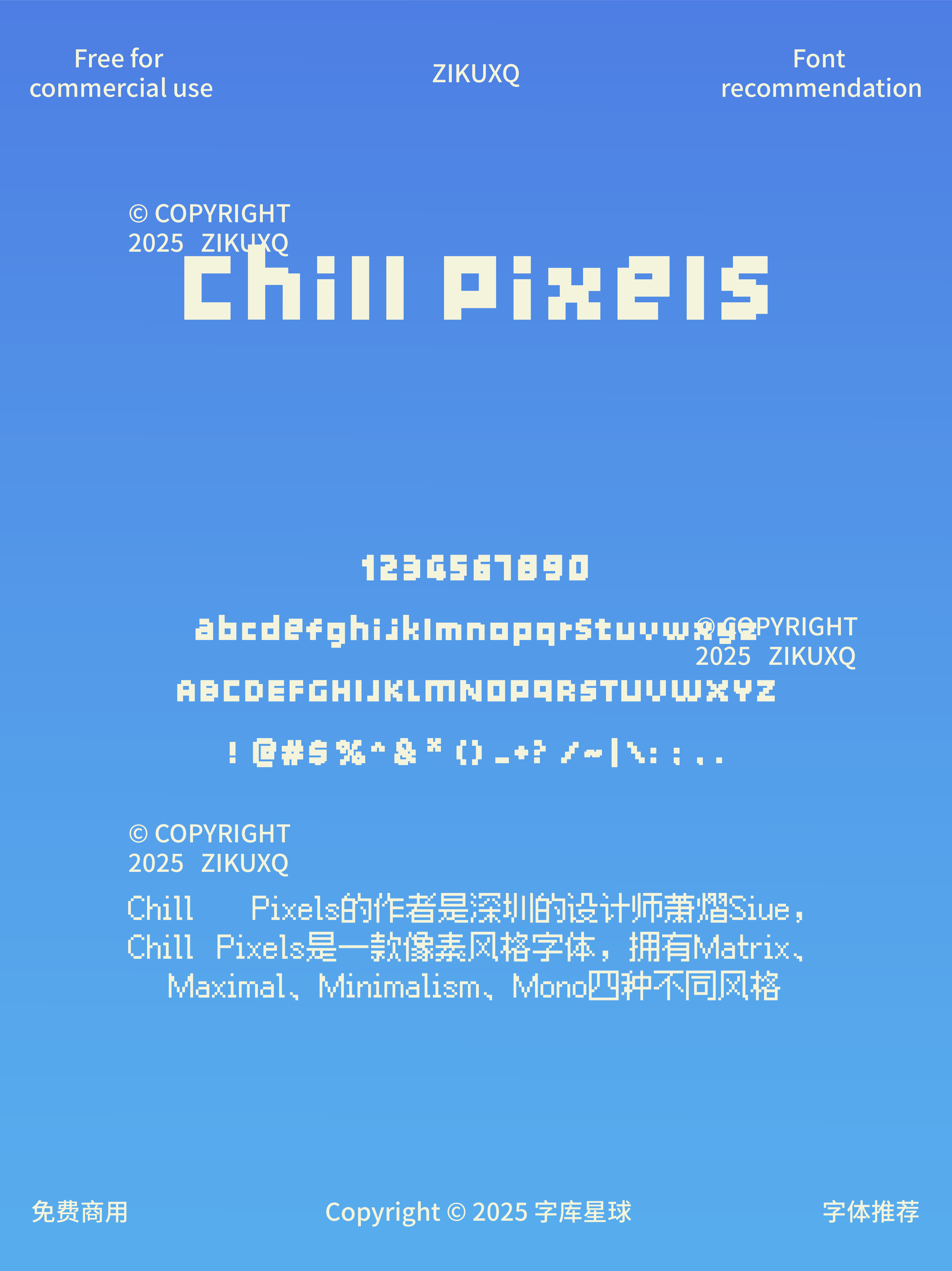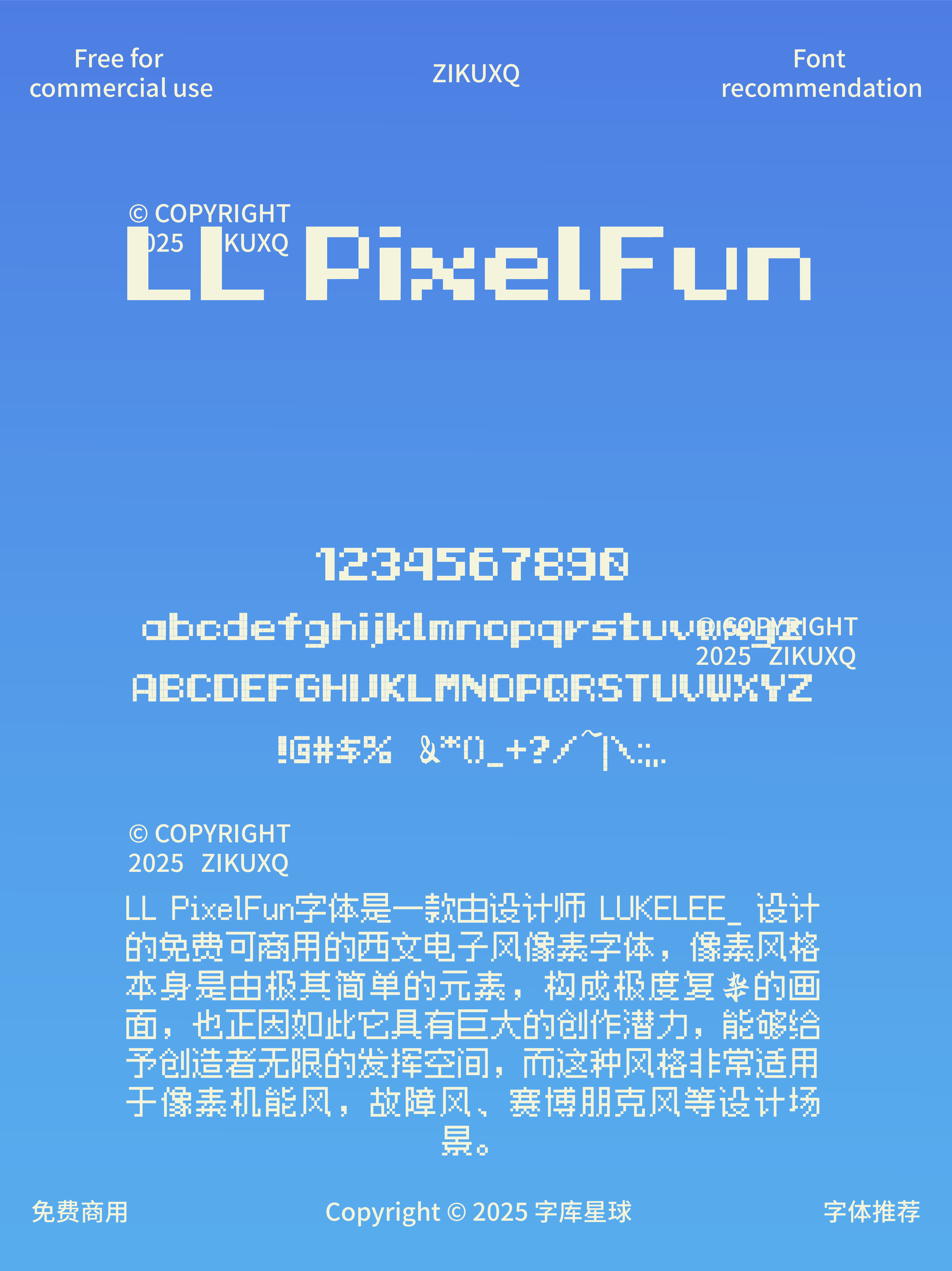 专为本地化像素艺术游戏设计的位图字体,方正刚直的字形让人想起经典电子游戏,在游戏标题、海报设计中能迅速吸引眼球。