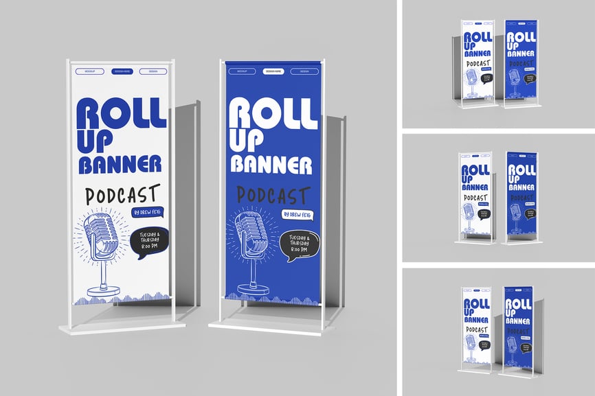 在这些精美的库存模型上展示您的卷轴横幅模型设计。此模型包含 4 个项目,并带有分层良好的 PSD 文件。此外,此模型还使用了智能对象功能,这意味着您只需几秒钟即可轻松快速地将现有设计更改为您自己的设计。