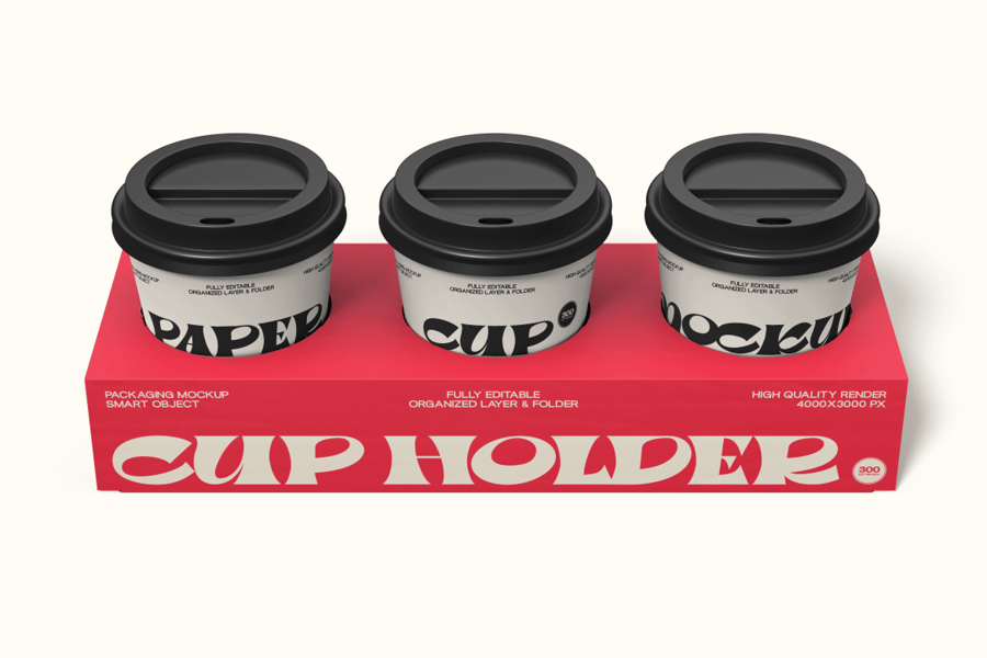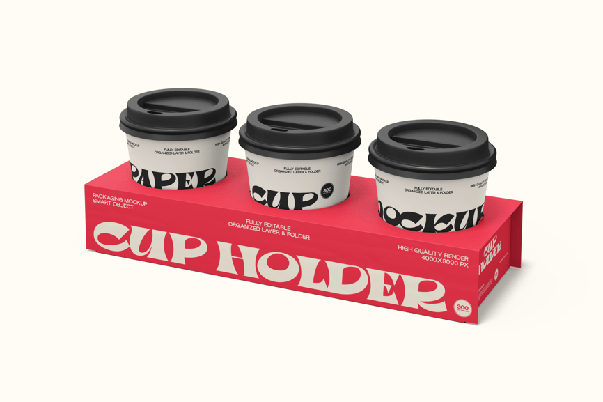 这款**纸杯架模型**是一款多功能工具,可以逼真地展示饮料包装设计。它包含两个独立的场景,您可以轻松定制纸杯、杯盖和托盘架,非常适合咖啡店、饮料品牌推广或产品展示。背景也可编辑,方便您根据设计需求调整场景。