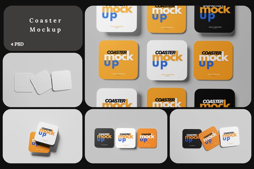 在这些精美的库存模型上展示您的杯垫模型设计。此模型包含 4 个项目,并带有分层精美的 PSD 文件。此外,此模型还使用了智能对象功能,这意味着您只需几秒钟即可轻松快速地将现有设计更改为您自己的设计。