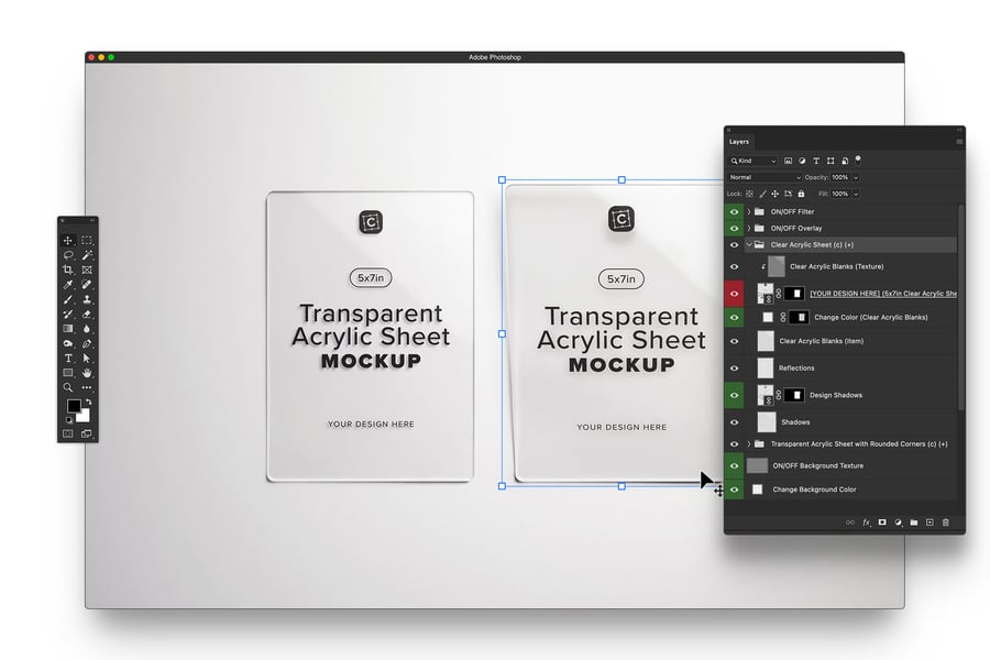 使用我们的 5×7 英寸亚克力板样机,释放您的创造力!这款多功能样机为您的设计提供逼真透明的亚克力表面,非常适合用于标牌、活动菜单、桌号和品牌展示。您可以自定义颜色、调整深度、反射和光线,打造真正精致的效果。无论您是婚礼创意人员、文具设计师还是产品造型师,这款样机都能助您打造清晰的演示文稿。此外,它兼容 Photoshop、Affinity Designer 和 Procreate,是所有数字设计爱好者的理想之选!让您的设计成为众人瞩目的焦点。