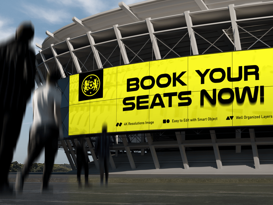 用这款体育场外墙广告牌模型,以宏大的规模展示您的广告设计。这款巨大的数字广告牌放置在现代体育场的外墙上,非常适合宣传体育赛事、音乐会或品牌活动。凭借其动态的户外场景和逼真的人群氛围,这款模型能够提供真实、震撼的呈现效果,让您的设计脱颖而出。