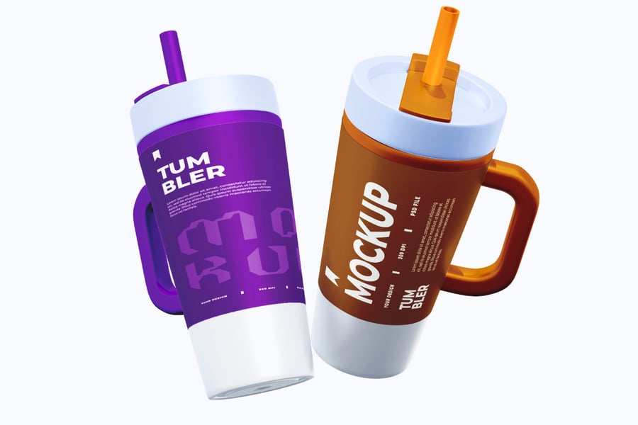 专业的单场景玻璃杯模型,以带手柄和吸管的现代杯子为特色。非常适合展示徽标、品牌或包装设计。可通过智能对象轻松自定义,并可编辑颜色和背景。