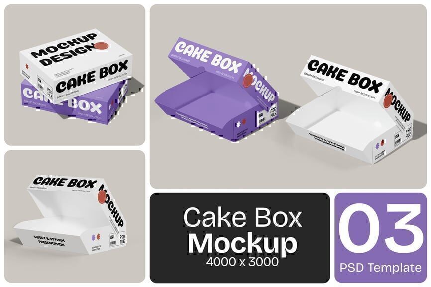 这款**纸质蛋糕盒模型**,专为甜点、糕点和甜品品牌打造,让您的烘焙包装更具格调。**非常适合咖啡馆、烘焙店和活动餐饮包装。**