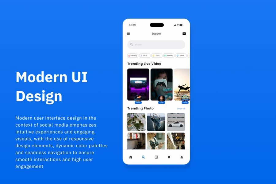 Stream Klick 是一款动态互动的社交媒体应用模板,旨在轻松分享内容并促进社区互动。其现代而充满活力的设计鼓励用户互动,是希望将用户与其喜爱的流媒体内容连接起来的社交平台的理想之选。这款前沿设计将提升您应用的吸引力!
