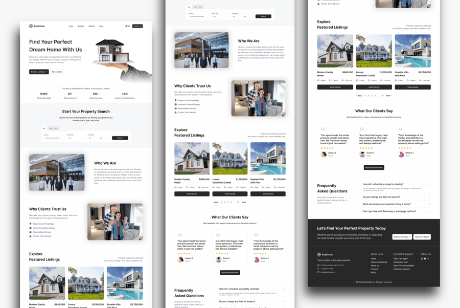 **此模板是一个简洁却专业且现代的网站。**您可以在 Figma 中编辑它。轻松插入内容、更改颜色,所有模板均已包含,可随时与您的受众分享。完全兼容、可编辑且像素完美。此外,它们组织有序,命名和分组都经过精心设计。