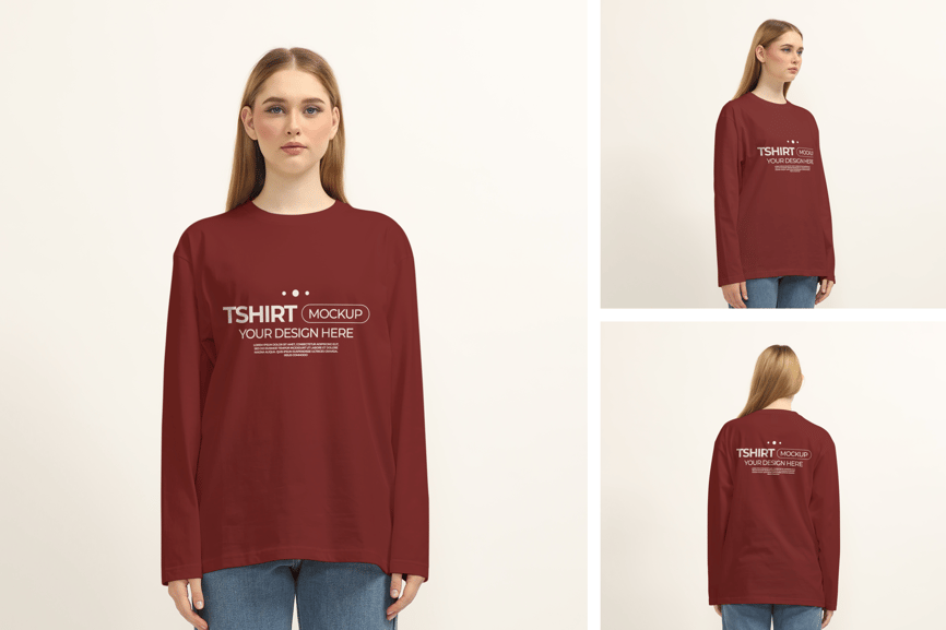 通过这款**长袖T恤样机**,以无与伦比的优雅展现您的设计。精准的细节和高分辨率,让您作品的每一个像素都光彩夺目,散发出专业感和惊艳的视觉效果。非常适合任何希望以高端风格展示作品集的人。