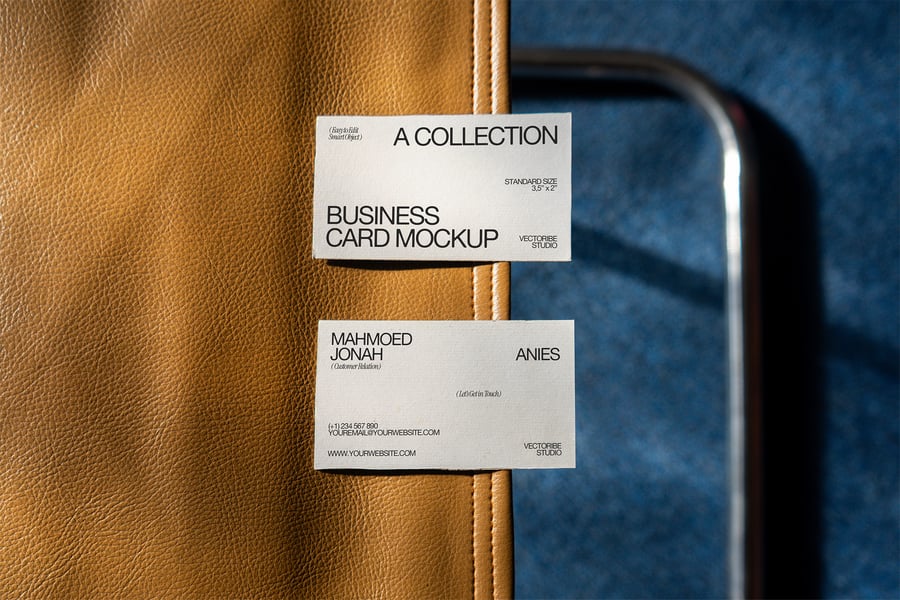 用这款逼真的模型,以简洁专业的方式展示您的名片设计。非常适合展示品牌形象、个人身份或客户项目。智能对象和高分辨率细节,易于定制。