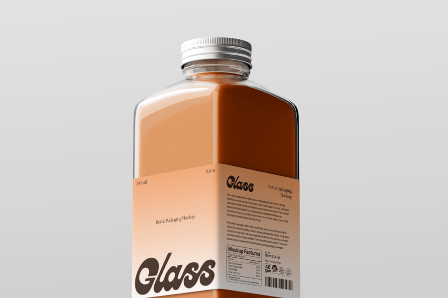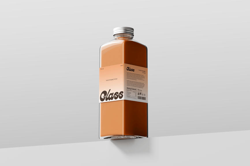 用这款玻璃瓶包装模型来展示您的饮料设计吧!该模型以一个方形高脚玻璃瓶为原型,并配有可编辑的标签和背景,让您能够灵活地以专业的方式展现您的品牌形象。这款模型非常适合用于咖啡、茶或果汁的包装,其简洁逼真的呈现效果非常适合食品饮料项目。