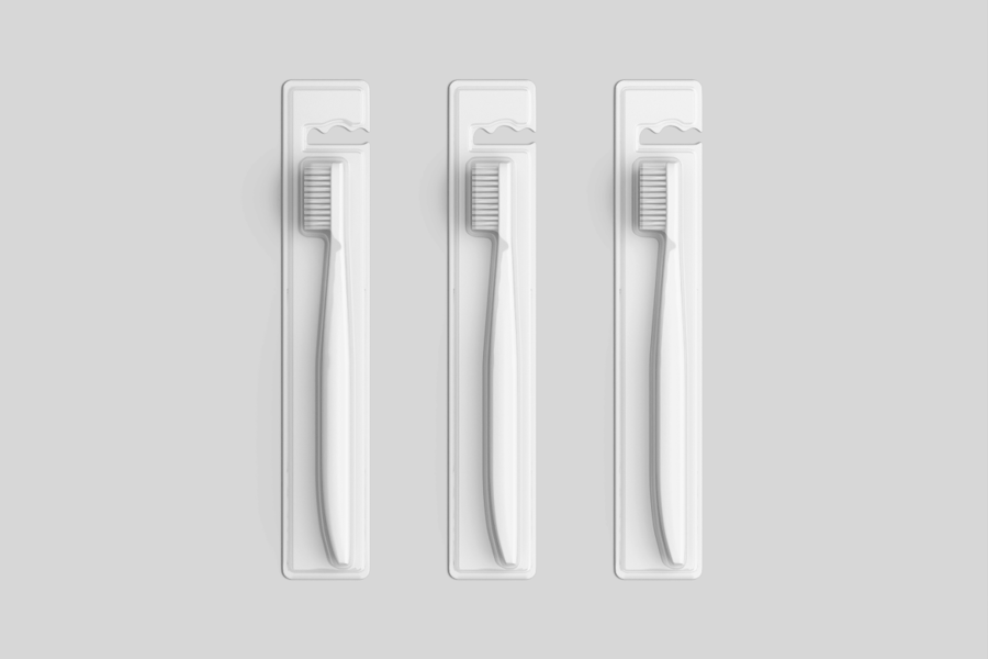 这款**牙刷包装模型**套装旨在帮助您以专业逼真的外观展示口腔护理产品。它包含两个独立的场景,分别展示泡罩式包装内的牙刷,是牙科护理品牌推广、产品展示和电商预览的理想之选。凭借其高分辨率细节,您的设计将清晰锐利,随时可用于市场展示。
