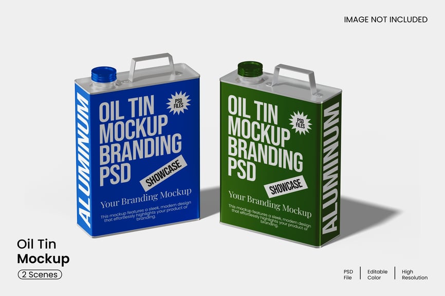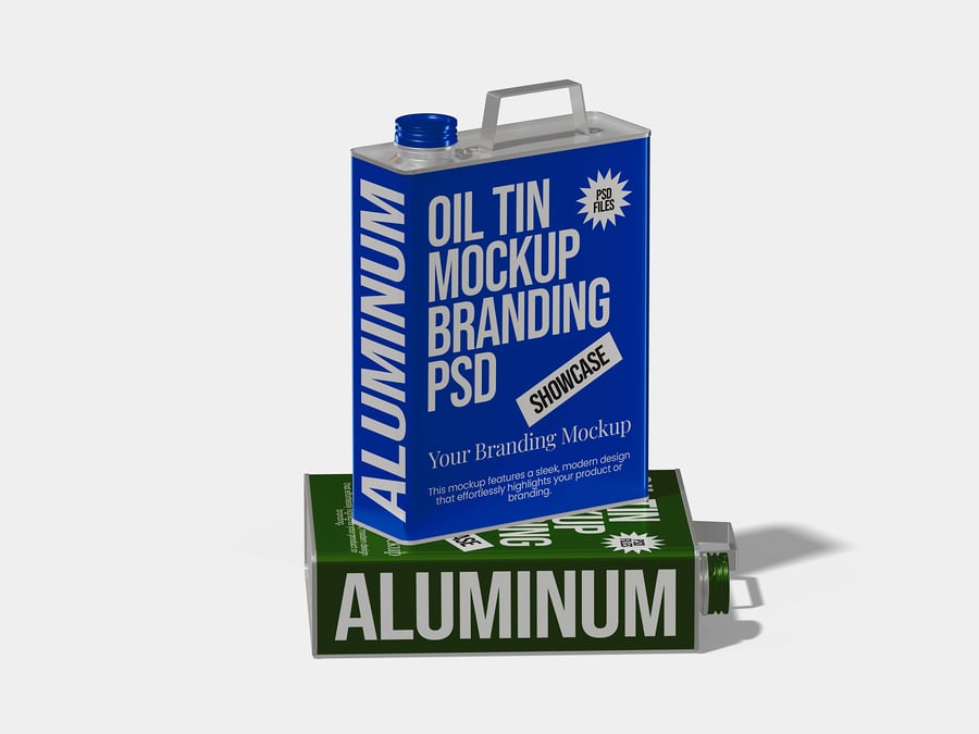 **扩展设计用途**:_金属罐包装、橄榄油品牌、润滑剂容器模型、汽车油标签、食用油设计、复古金属罐、工业产品包装、厨房产品模型、锡盒可视化、可编辑油品牌场景_