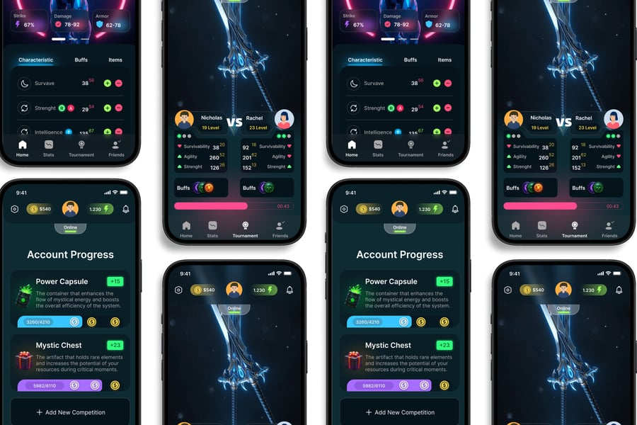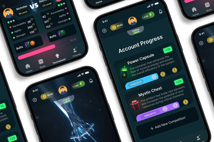 隆重推出**战斗游戏**移动应用 UI 套件,它是一款现代化且功能丰富的解决方案,可用于创建简洁易用的应用界面。对于希望加快设计流程的设计师和开发者来说,这款 UI 套件完美契合,它在一个包中提供了所需的所有基本组件。