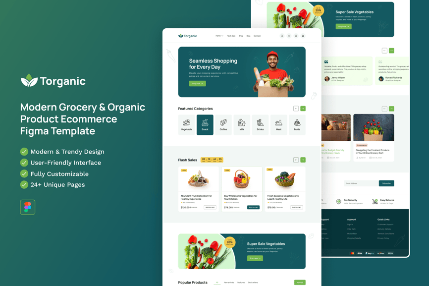 **Torganic** – 通过现代 Figma 设计改变您的可持续杂货店购物体验