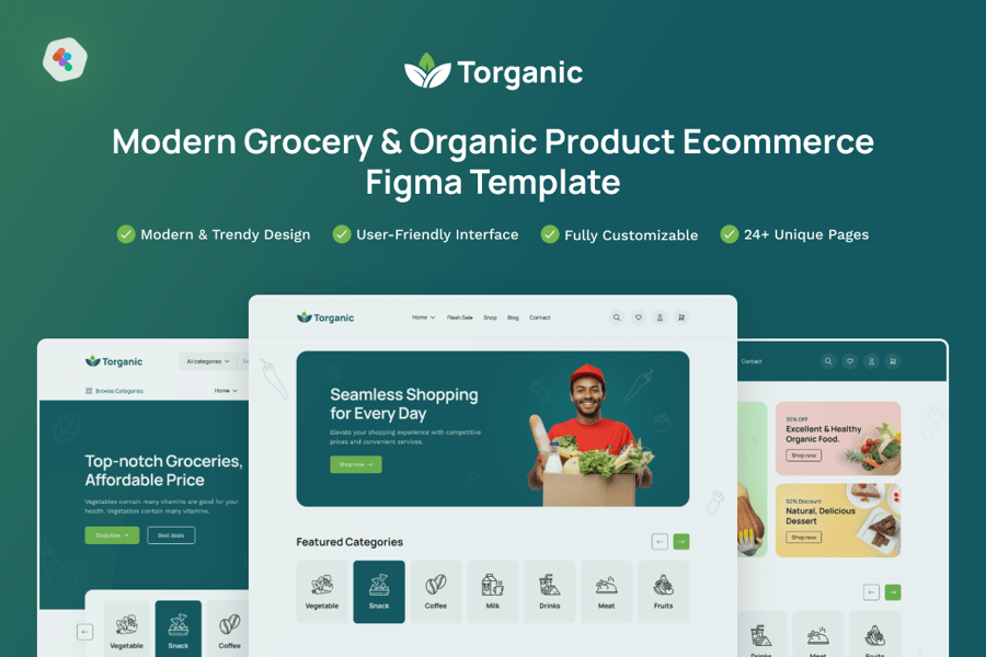 隆重推出 Torganic,这是一款专为现代环保的杂货和有机产品电商网站打造的终极 Figma 模板。我们现代的设计将美观与功能完美结合,重新定义您的在线杂货业务。Torganic 为杂货购物带来了全新且可持续的视角,提供直观、以用户为中心的界面,提升客户体验并提升转化率。