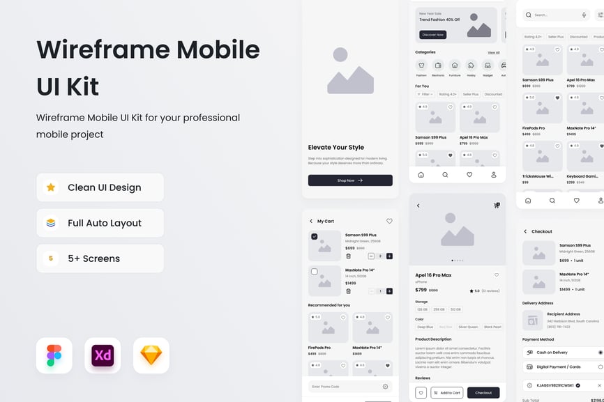 这款兼具简洁易用性的线框套件可简化您的工作流程。无论您是展示创意、构建原型,还是准备应用概念,Comm 都能为现代移动设计项目提供坚实的基础。