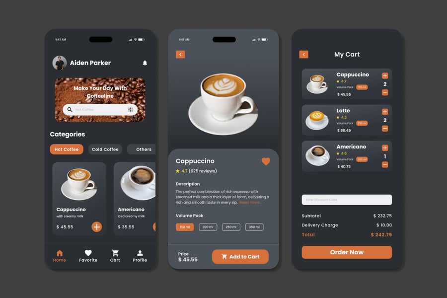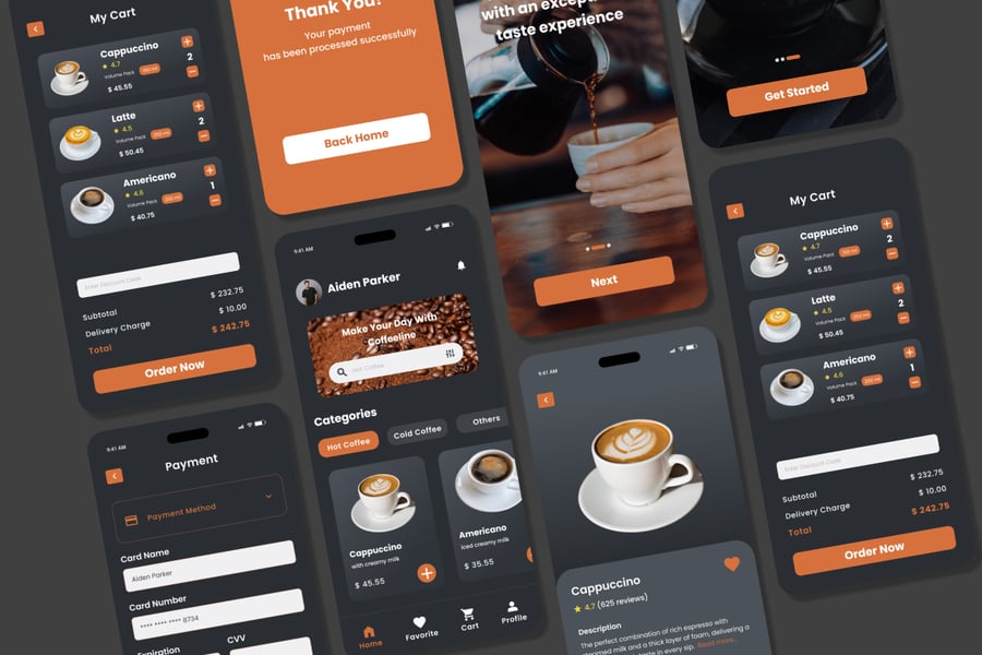 Cofeline 为咖啡店应用带来全新且引人入胜的外观。其现代化的设计和用户友好的界面,确保咖啡点餐体验流畅愉悦。对于希望通过充满活力且易于导航的应用吸引顾客的咖啡店来说,Cofeline 是理想之选。