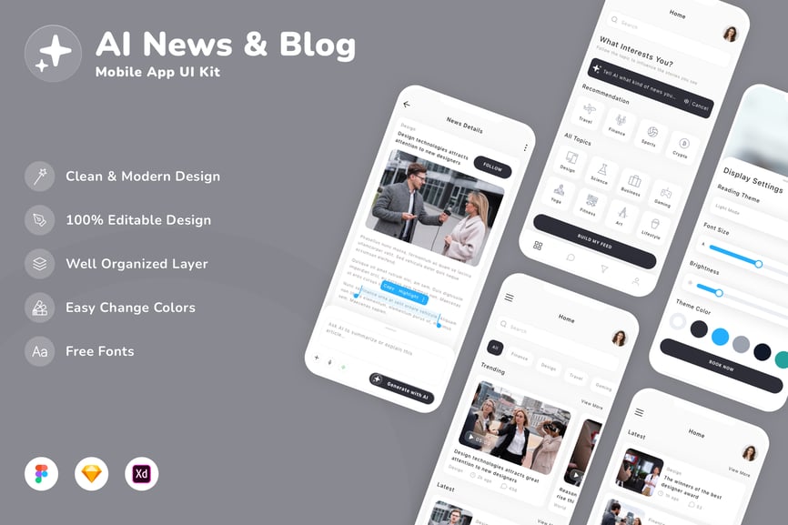 该 UI 套件采用现代设计趋势设计。
