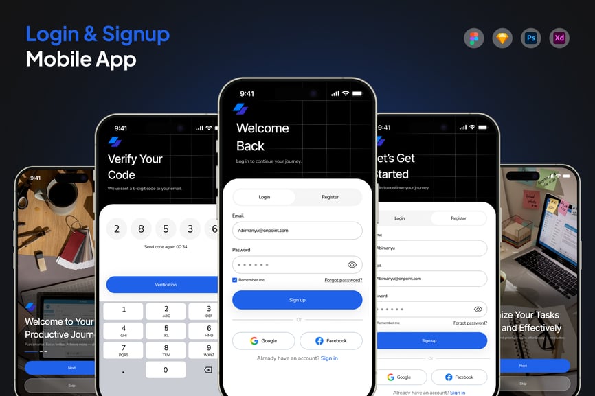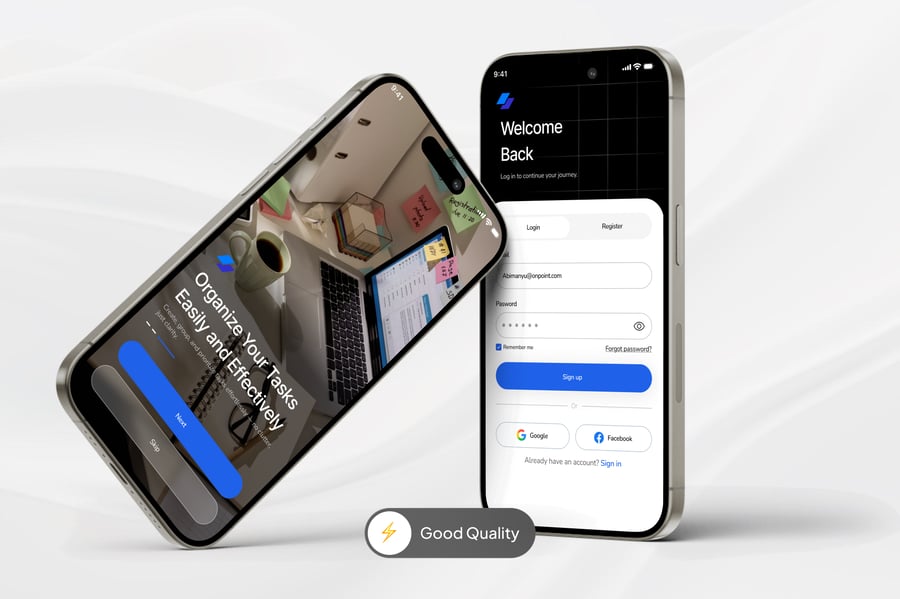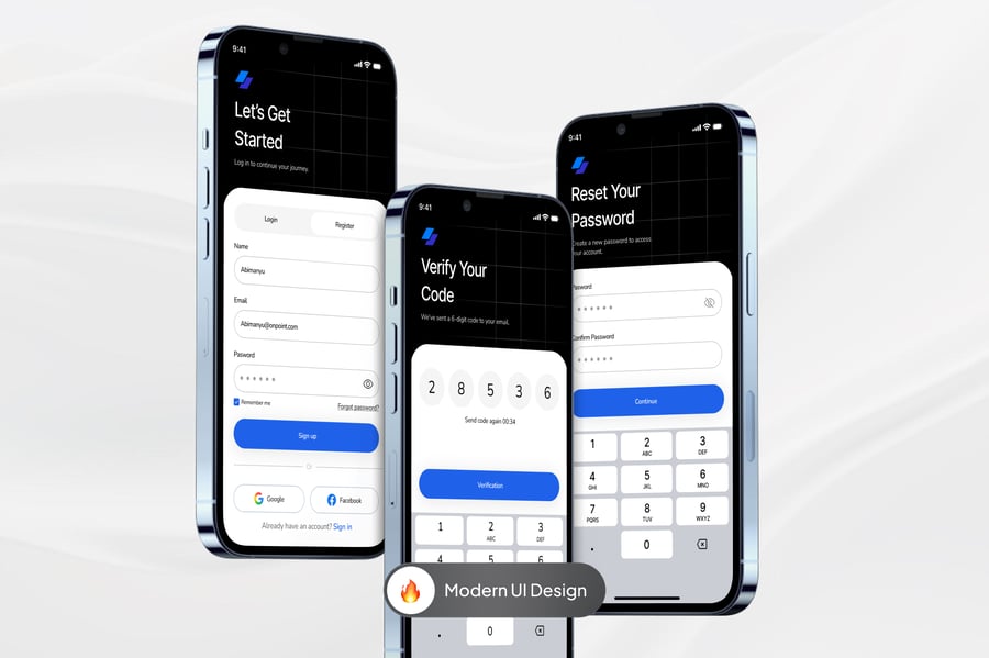登录和注册移动应用界面优先考虑用户体验、可访问性和安全性。该流程经过精心设计,旨在确保新用户能够流畅地完成注册,同时保持回访用户的清晰快捷。简洁的布局、直观的表单字段和清晰的行动号召,让用户能够在几秒钟内完成注册或登录——无论通过电子邮件、电话号码还是社交账户。我们实现了用户友好的功能,例如密码可见性切换、验证反馈和分步指南,所有这些功能均遵循移动优先的最佳实践进行设计。