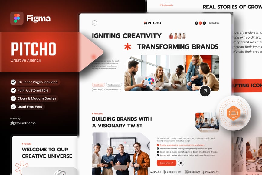 Pitcho 是一款专为创意机构网站量身定制的专业 Figma 模板。无论您是为创意机构、设计师、自由职业者、营销机构、多功能机构、作品集、初创公司等构建网站,Phitch 都能提供现代、简洁且完全可定制的模板,帮助您打造具有影响力的在线形象。其用户友好的设计确保开发人员和设计师都能轻松流畅地完成设计。