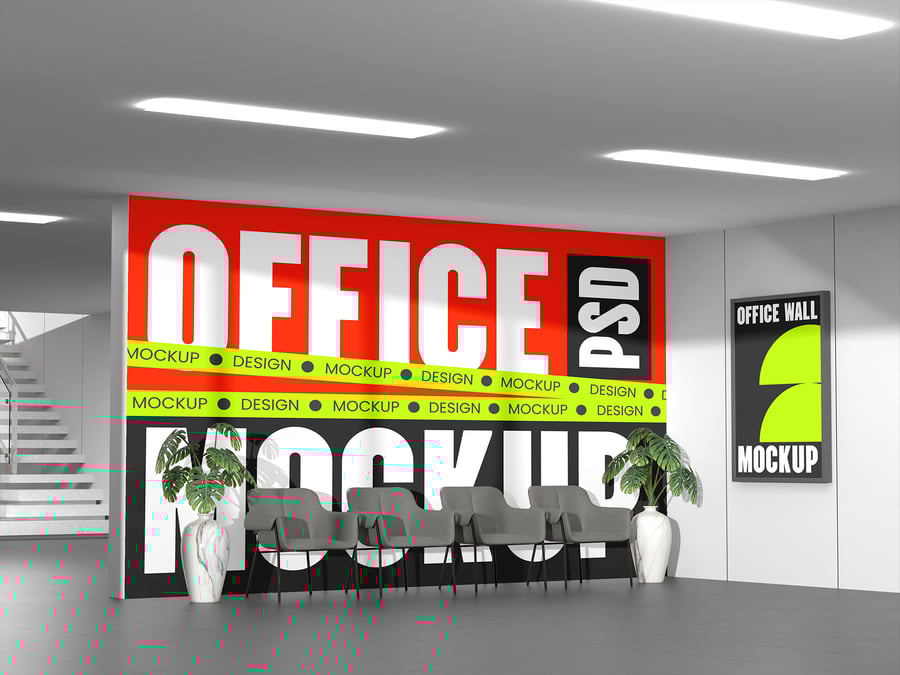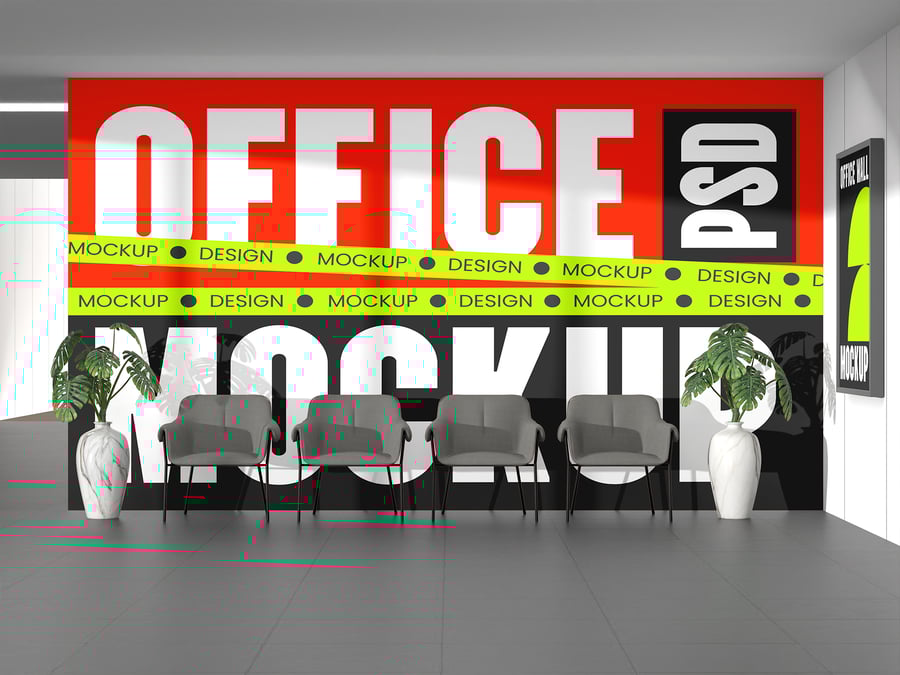 使用此**办公室墙壁模型**在现代且具有影响力的环境中展示您的徽标或品牌,非常适合在逼真的室内环境中展示公司形象、标牌设计或企业视觉演示。