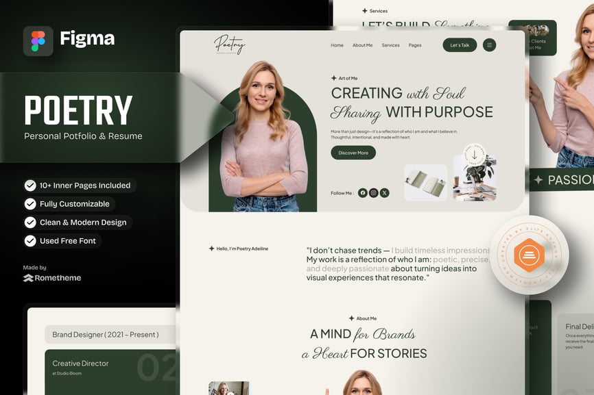Poetry 是一款专业设计的 Figma 模板,专为个人作品集网站量身定制。无论您是为作品集、专业人士、简历、工作室、代理机构,还是需要以专业方式展示项目和服务的自由职业者构建网站,Poetry 都能提供现代、简洁且完全可定制的模板,帮助您打造具有影响力的在线形象。其用户友好的设计确保开发人员和设计师都能轻松流畅地完成设计。