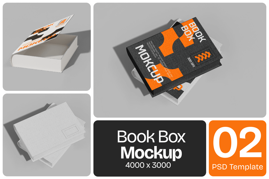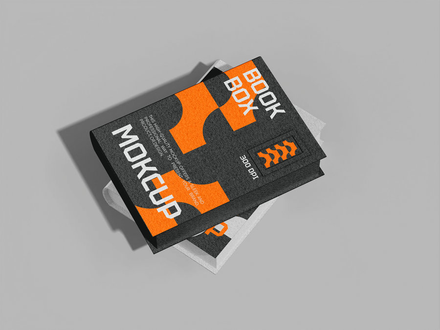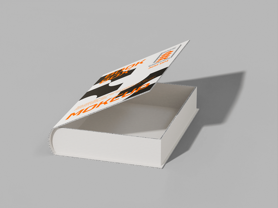 使用此款**书盒模型**,为您的出版和包装作品打造时尚外观,完美适用于高级套装、珍藏版或品牌书籍包装。此模型边缘清晰锐利,纹理逼真,突出封面和盒套的设计。