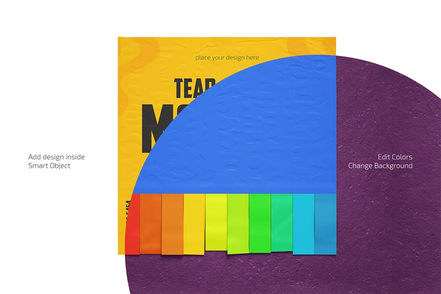使用可撕广告样机套装,打造精彩的演示文稿。使用我们的样机展示您的徽标、品牌等。毕竟,它是高分辨率制作的。智能对象可以节省大量时间。因此,只需点击几次智能对象,添加您自己的图形并保存结果即可。一切都很简单!希望您会喜欢。