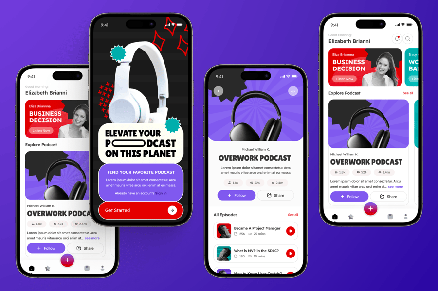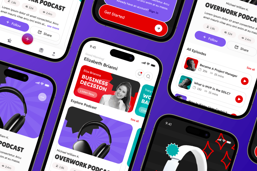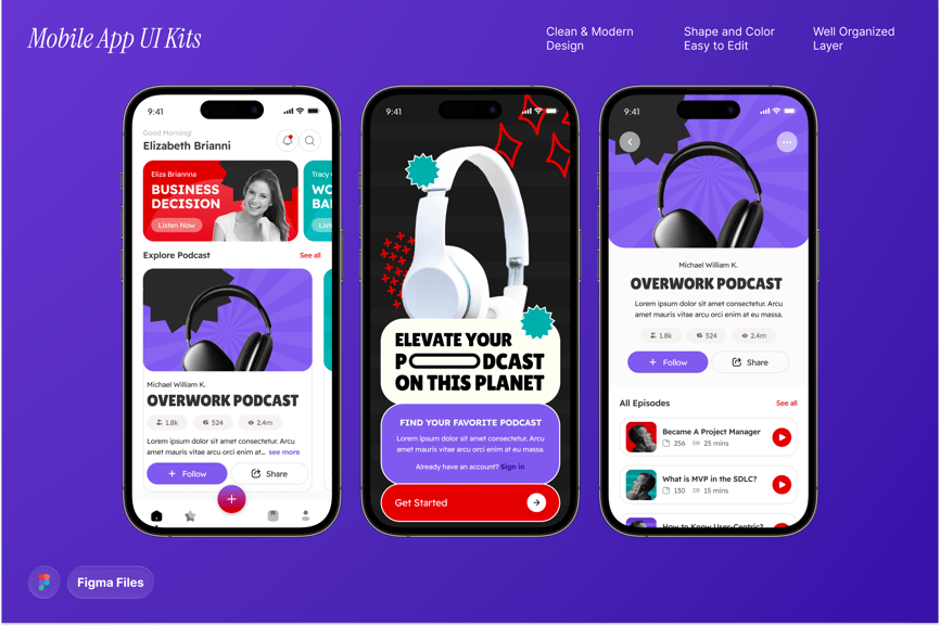 专为流媒体平台、播客和音频应用设计的时尚 UI 套件。它为播放列表、剧集和发现功能提供了流畅的屏幕,并针对用户友好的聆听体验进行了优化。
