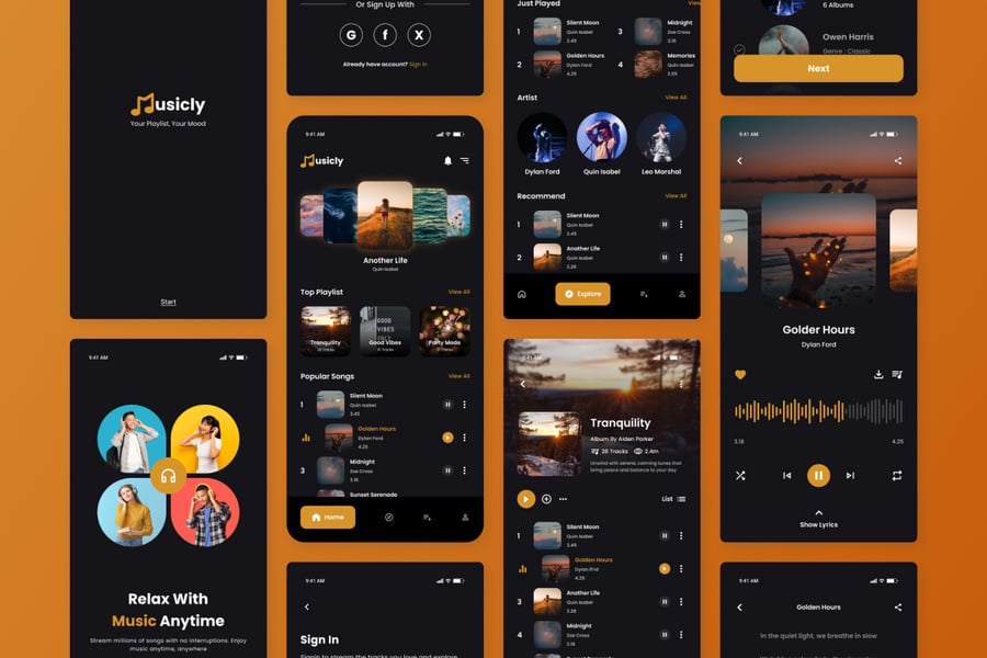 Musicly 旨在提供流畅、引人入胜的音乐体验。它拥有用户友好的布局和生动的视觉效果,让发现、创建播放列表和在线收听音乐成为一段愉悦的旅程。